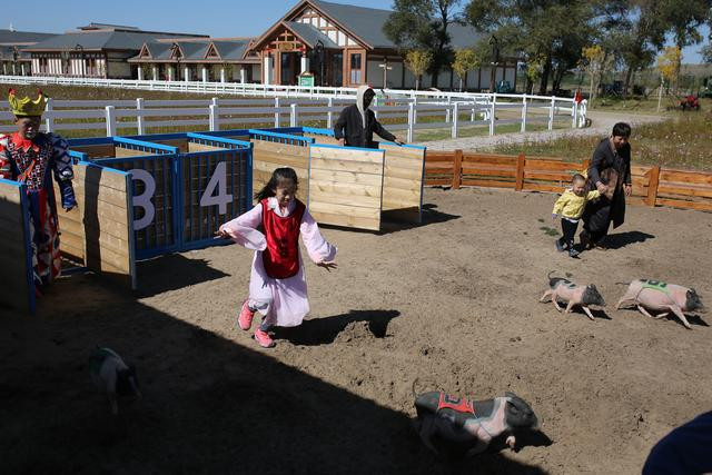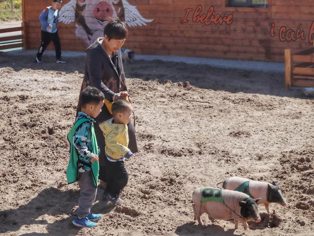 既然是带孩子的来的,就少不了一些儿童的项目,小朋友们最喜欢的就是萌宠乐园了,里面可以喂鸭子,骑英俊帅气的矮种马,赶小猪赛跑等等。