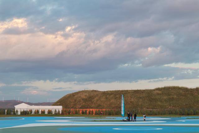 入住后稍微休整了一下,蹬蹬就迫不及待的要出去玩,因为在来的时候看到酒店旁边有一种很特别的车,一种带帆的车。我们到旁边一问才知道,这种车叫陆地风帆车,10月1日才正式运营,但是景区内的工作人员让我们体验了一圈哦,它完全依靠风力驱动行驶,驾驶者需依据风向,调整扶把方向并通过人的身体重心的移动来行驶和转向。坝上地区常年有风,正适合这项运动,刚开始我以为不会很快,事实上风大的时候还是挺快的,不过这个车刹车挺方便的,只要松了手里的绳子车子就慢慢停了。蹬蹬还小玩不了,但是看着我玩,他都很兴奋,小朋友大概6岁左右就可以玩了呢。