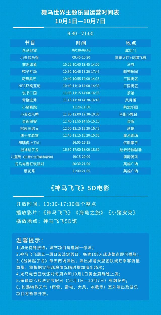 另外每个时间段都有不一样的表演,附上舞马世界主题乐园运营时间表,照着走不迷路~