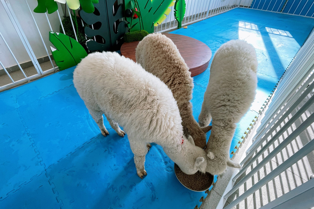 走到马厩尽头是羊驼乐园,可以在这里和可爱的羊驼互动。