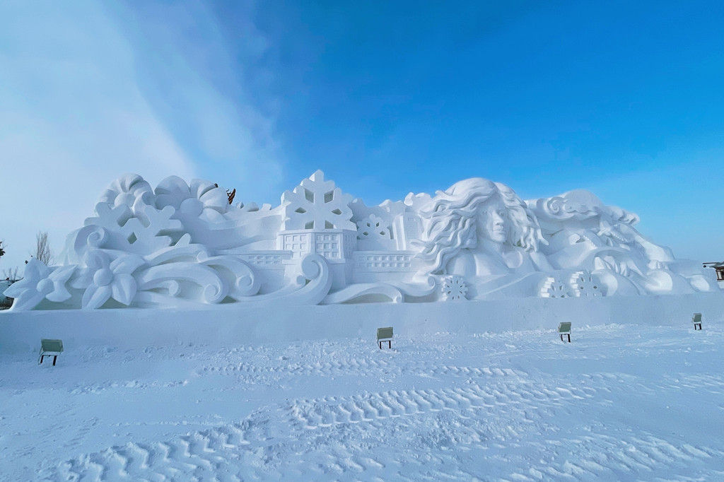 英雄广场上建造了很多座巨大的冰雕和雪雕。