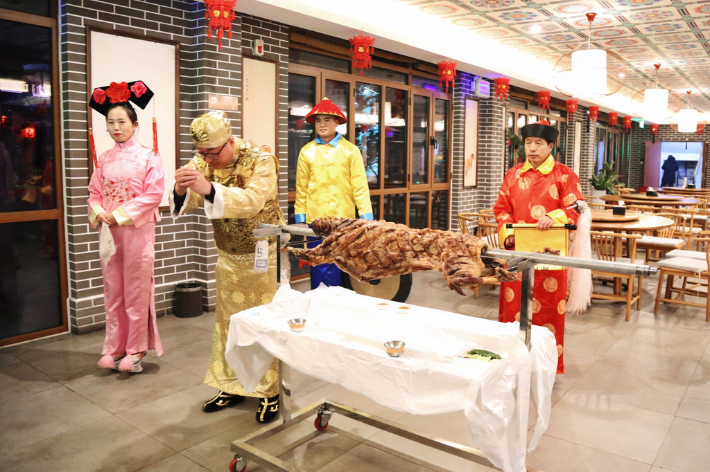 除了烤全羊,美食街还有满族八大碗、大汉铜火锅、坝上莜面荞面等特色美食,不同口味在这里都能找到合适的选择。