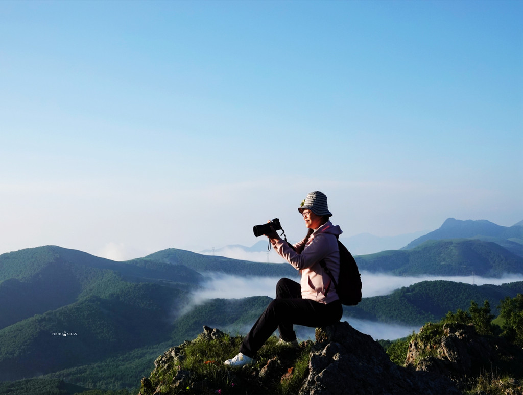 昨晚没有看到火红的晚霞,有些遗憾,清晨4点半天已经大亮,穿上薄羽绒服,一行人驱车到千松坝原始森林的天地T观景台,等待日出的到来。