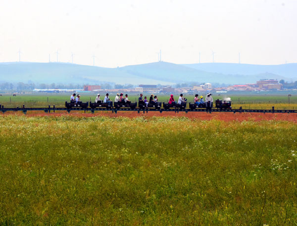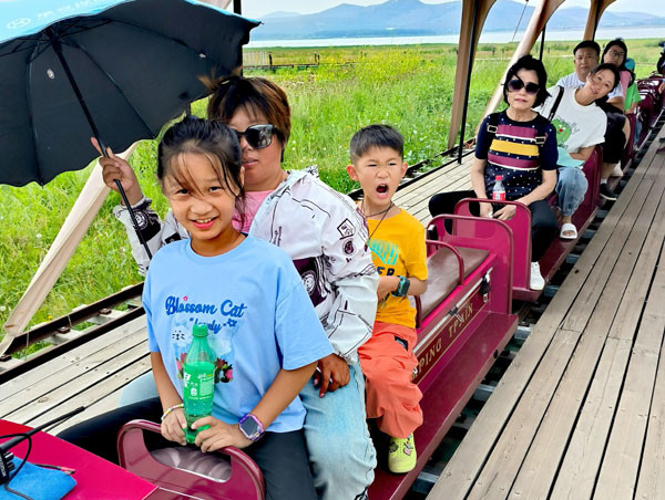 漫步来到湖边,我们乘小火车进入景区腹地观光,行进中,环顾四周这里的湿地风光美景尽收眼底。在面积宽阔的湿地上,是一条通向湖边的木质栈道。而小火车的终点刚好也是在闪电湖的湖畔。