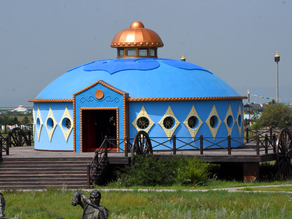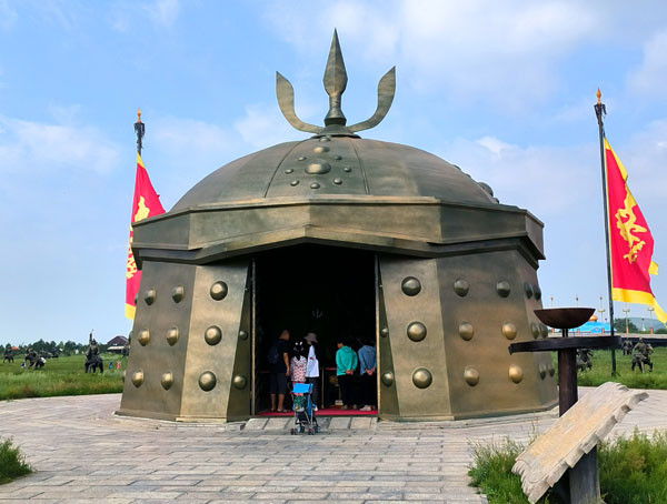 再往前行就来到了独具特色的议事金帐。这里是成吉思汗召开大会,接待客人,指挥战争的地方,此情此景仿佛带领人们回到了那个金戈铁马的时代,在这里瞻仰,相信每个人都会感受到成吉思汗戎马的一生,辉煌的一生。
