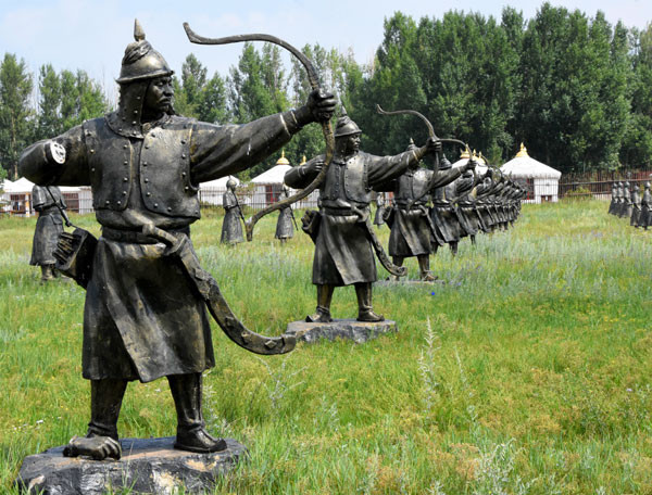 经过长生天牌坊,居高临下放眼望去,一派由数不胜数的蒙古武士各种戎马造型的雕像,分布在中轴大道的两侧,与此同时,这幅展现当年战场上金戈铁马的无比壮观的景象,真是太令人震撼了。