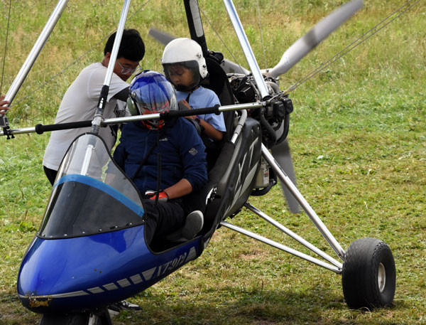 胆大的咪姐乘三角滑翔机(摄影:冯赣勇)