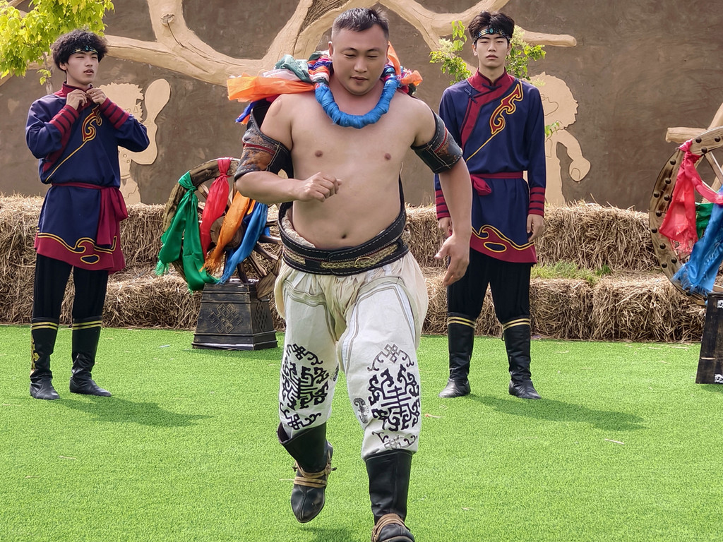 户外的表演更是精彩绝伦,蒙古族的摔跤(游客可以与摔跤手互动,会给做好防护再摔你的,非常刺激。)、还有歌舞表演、拔河等互动游戏。