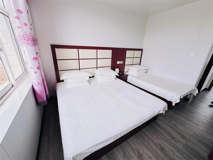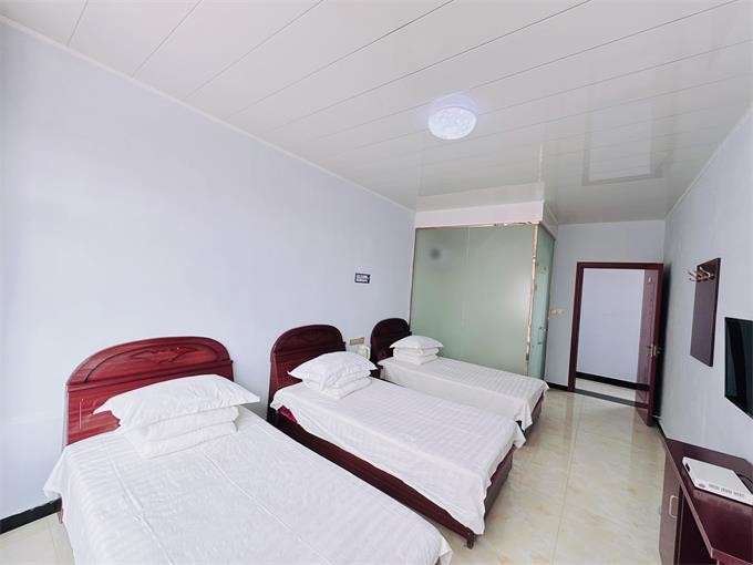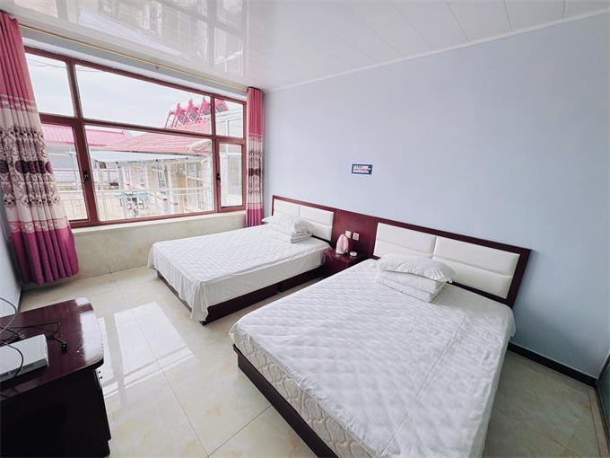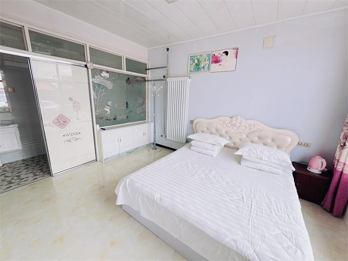 房间设施:共有12间客房,房间类型有大床房,双床四人间,三人间、亲子间等房型,服务设施:24小时热水、免费洗漱用品(6样以上)、房间非常干净,洁白的床单和紫色的窗帘给人一种归家的感觉,非常温馨。