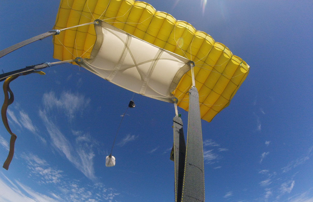 跳伞建议穿 T 恤、中长裤及运动鞋;