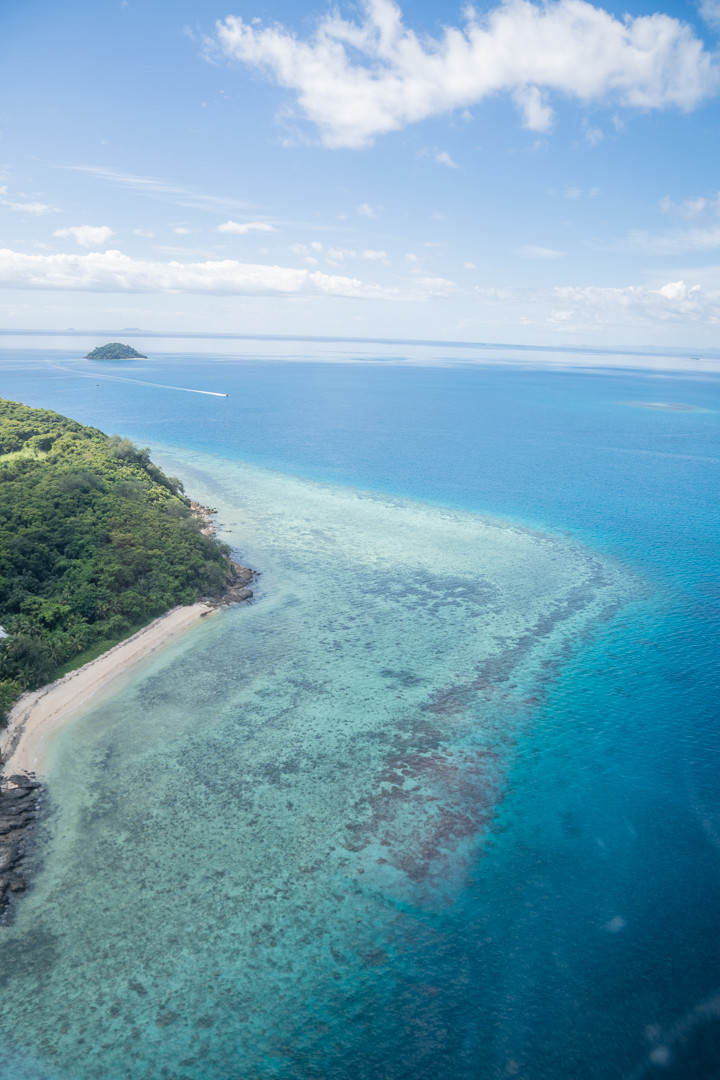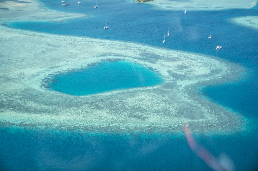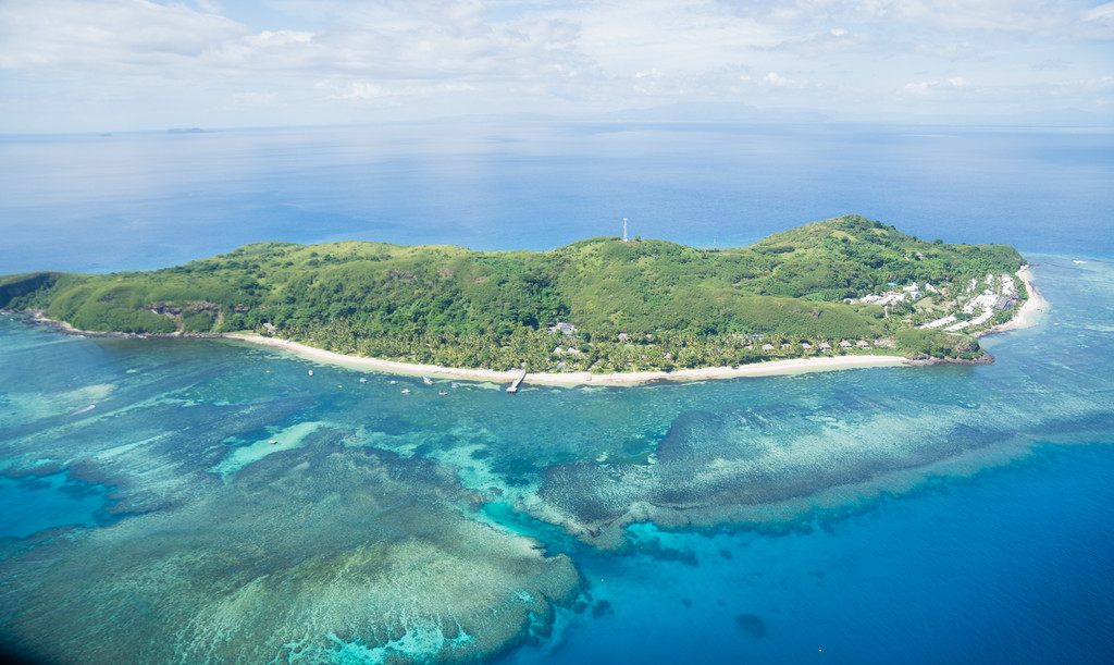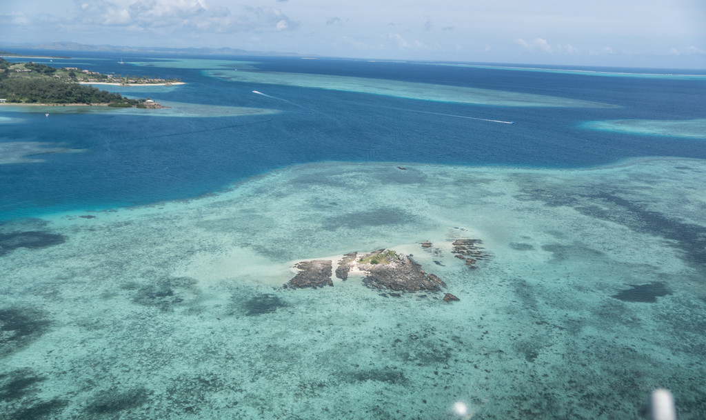 √抵达地面之前,可以在空中欣赏斐济原始湛蓝的海水、白色沙滩和玛玛努卡群岛(Mamanuca Islands)、丹努娜岛(Denarau Island)美丽的珊瑚礁;