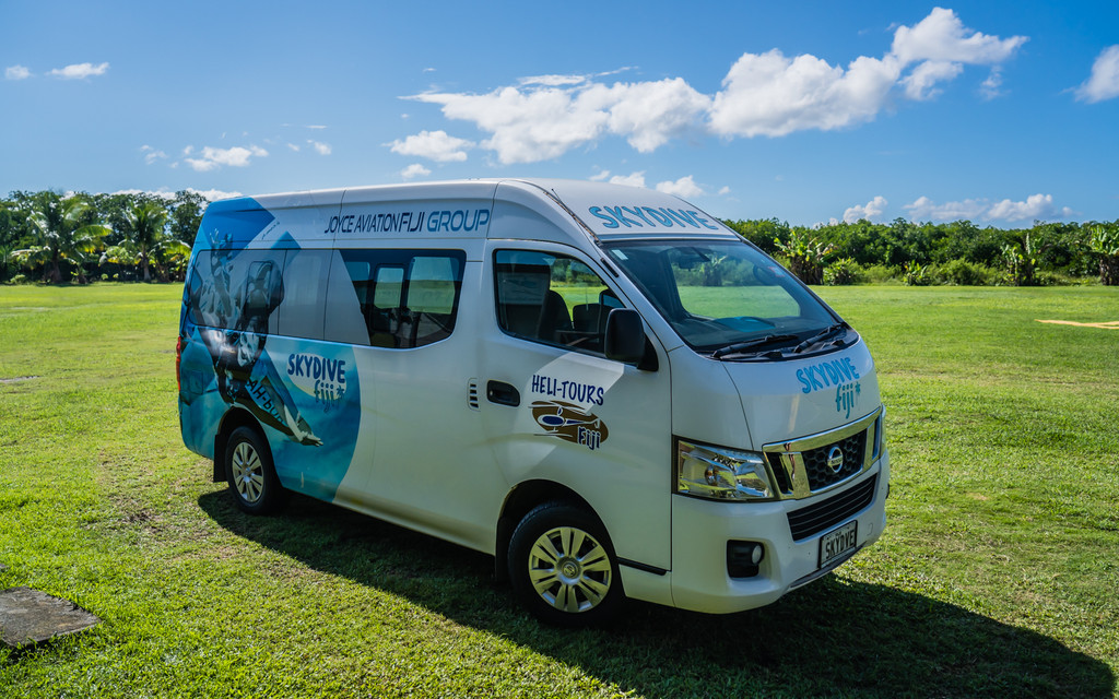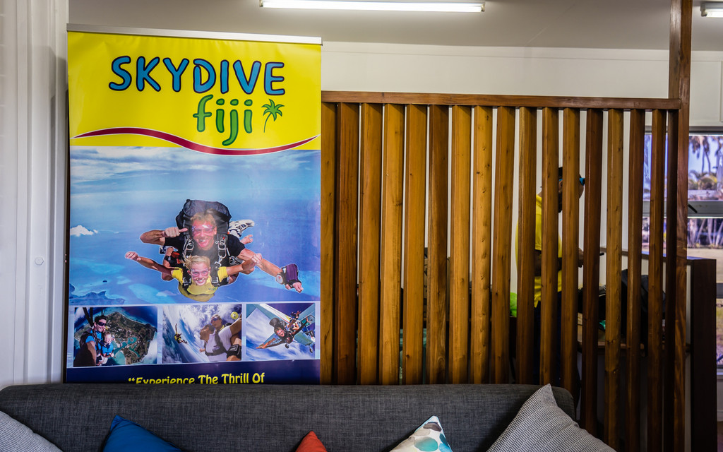 √当地著名跳伞公司-SkyDive Fiji就在楠迪镇上,离机场仅有15分钟车程。在跳伞基地穿戴好设备并检查完好后乘坐小飞机升空到达一定高度后就可以开始准备跳伞了。