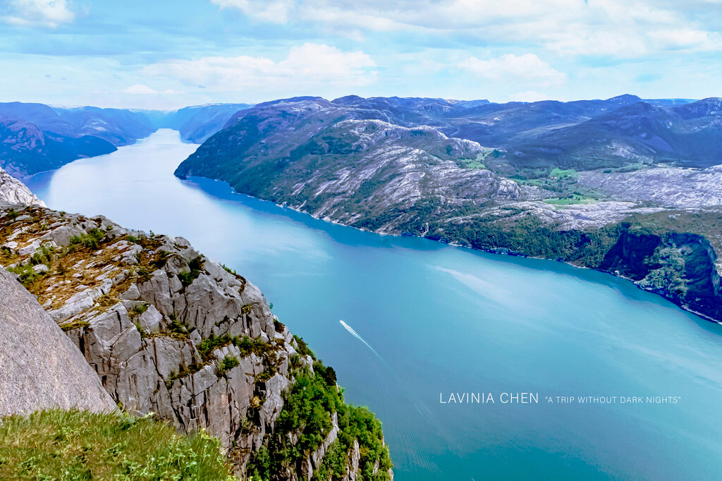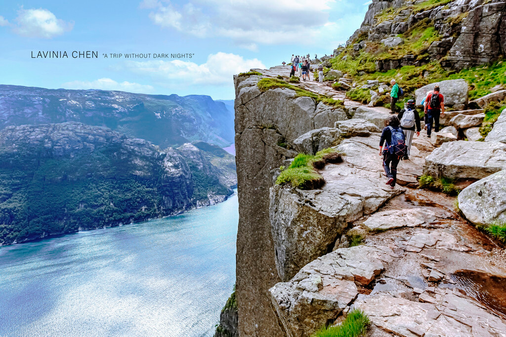 圆梦的一天,经历飞机、轮船、汽车、徒步,终于到达世界第一自然景观,俯瞰悬崖下的吕瑟峡湾。