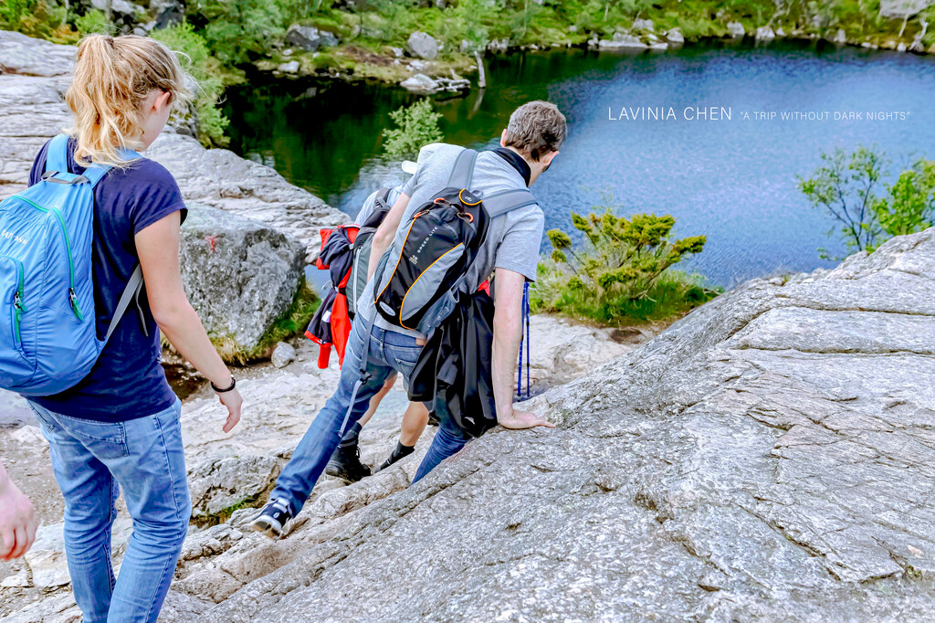 坐在布道石上放空一下,和吕瑟峡湾和张影。小风一吹可太舒服了。