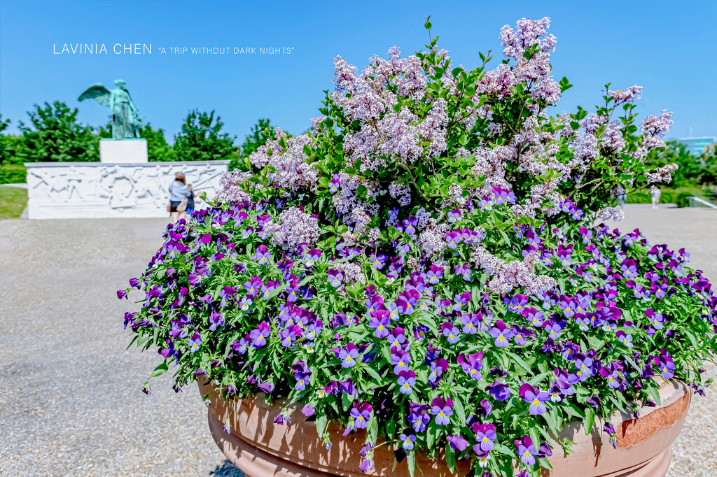天气越来越晴,甚至天空万里无云。哥本哈根的花园里种植着很多大型盆栽,在骄阳下热烈的开着。