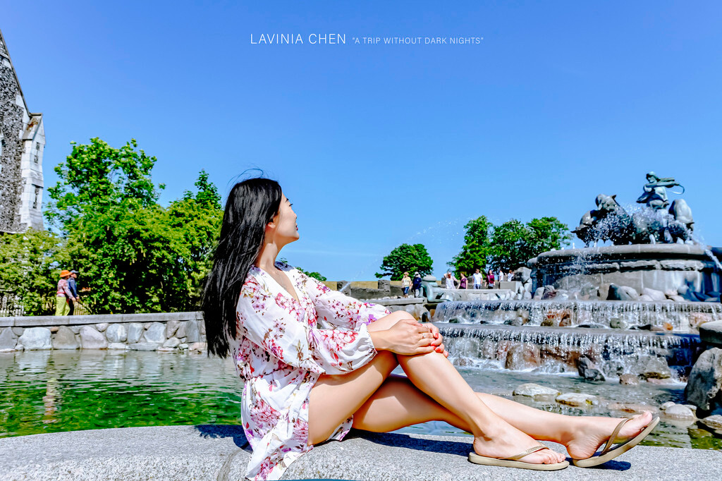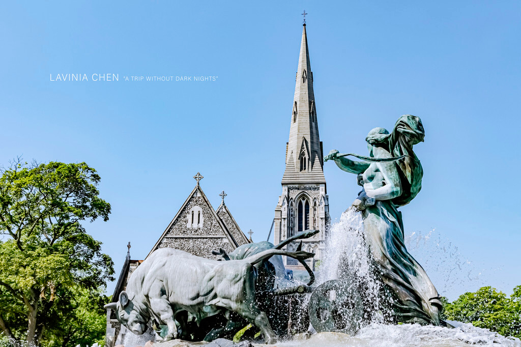 走着走着,就来到了长堤公园里另一个和小美人鱼铜像一样闻名于世的吉菲昂女神喷泉。喷泉由吉菲昂女神和四条牛及套犁等一组铜塑组成,由丹麦雕塑家昂拉斯•蓬高花费10年时间铸造而成,于1908年竣工揭幕,至今已超过百年。