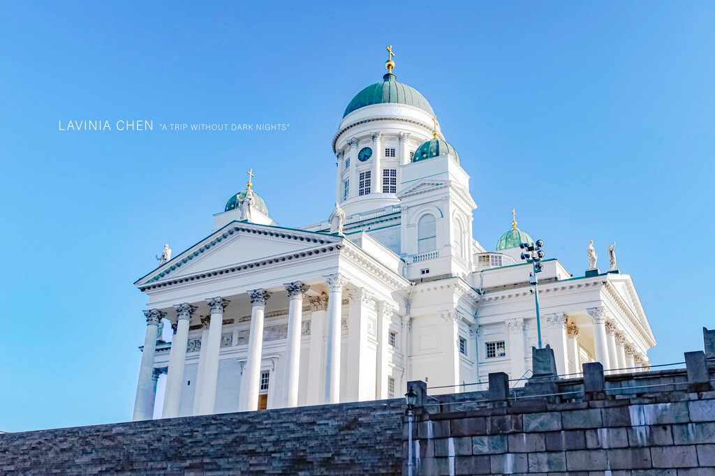 走到广场东边儿,从侧面看到了更立体的大教堂。大教堂是建筑大师恩格尔的三件杰作之一,另外两件站在广场上也能看到,是政府大楼和赫尔辛基大学。