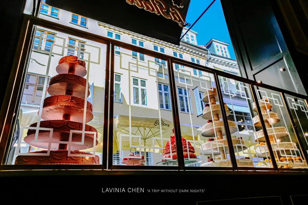 然后我们在热到生无可恋的时候,偶遇了丹麦最有名的甜品店,那必须不能错过呀,我们点了几角店员推荐的蛋糕。我选的是一块有泡芙的原味蛋糕,真的是好大一角,一个盘子都没装下,这个就是很正常那种大盘子,不是甜品的小盘子。丹麦的一角蛋糕和我们印象里的数量不太一样哈哈哈。