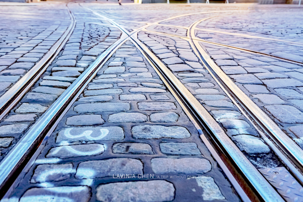 赫尔辛基电车很多很多,地上随处可见这些轨道。