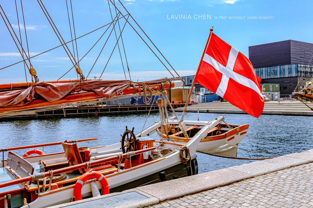 哥本哈根也是一个水系很发达的城市,随处可见船只和港湾。丹麦的国旗在艳阳下飘动的很耀眼。