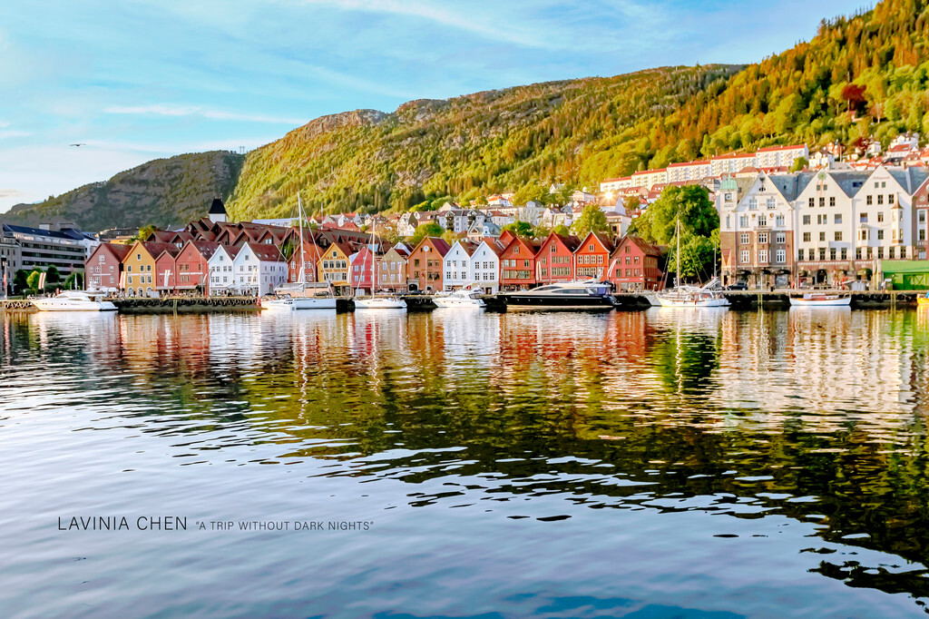 坐在布吕根岸边看午夜阳光下的彩色木屋倒影荡漾,感叹这个日不落的夏天可真奇妙。