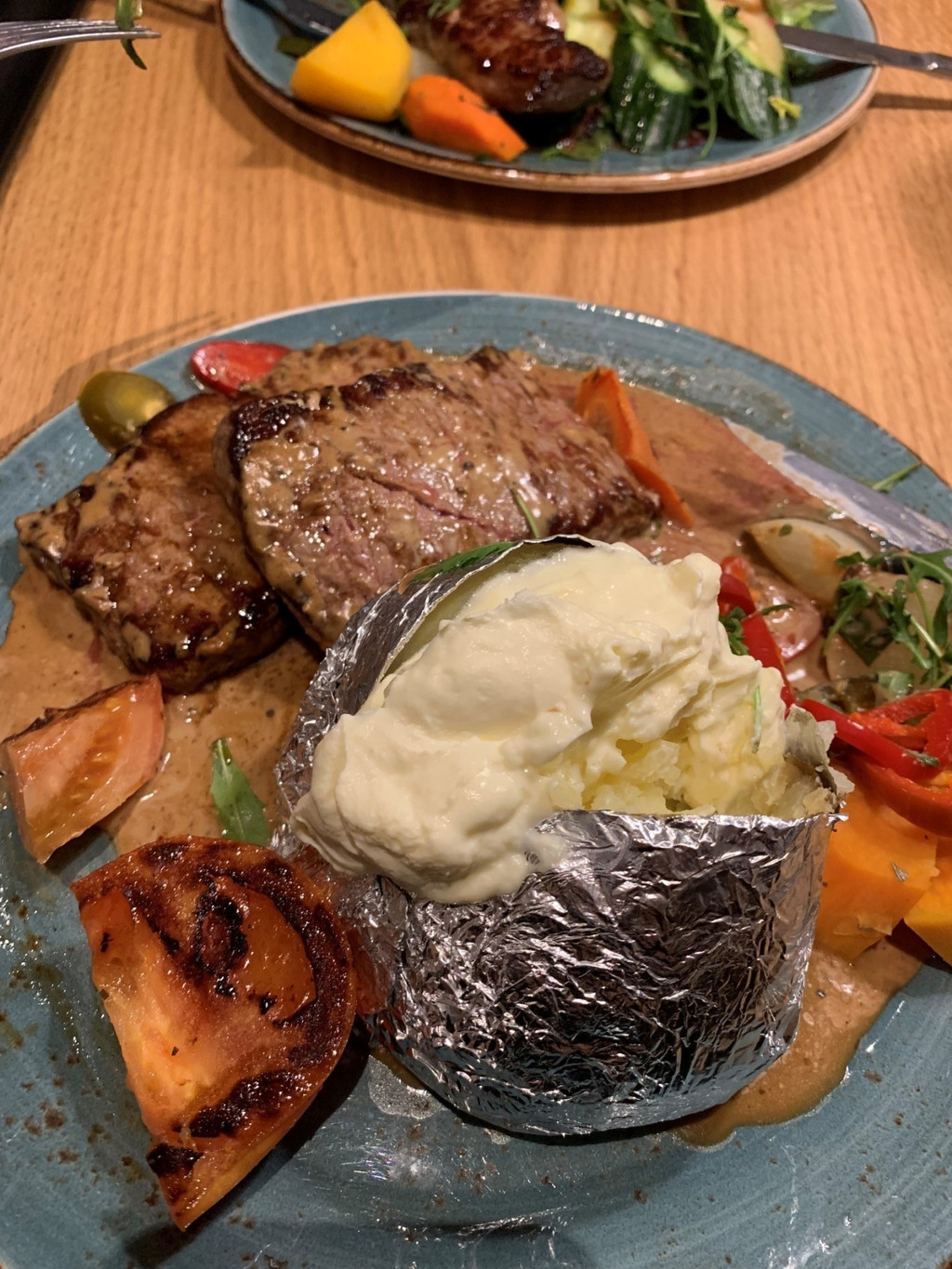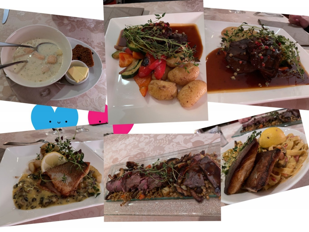 伊伐洛餐厅真的很好吃,餐厅有自助餐,但看了看觉得一般,还是单点了。这个决定是明智的,三文鱼土豆浓汤强烈推荐,还有那个煎白鱼,鹿肉尝个鲜,有点腥,不是特别感冒。