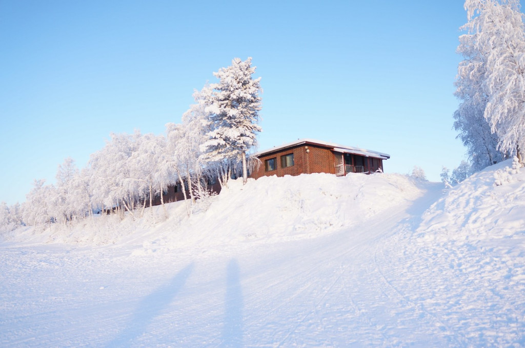 12点啦,积极的我们早早去club等着了,工作人员看了看我俩的装备已经够厚了(尴尬小蜂),没有给我们换他们的衣服,事实上,滑起来后会出很多汗,尤其是越野滑雪。一般国内玩的滑雪都是宽版的,属于高山滑雪的一种,北欧有独特的滑雪方式,称为越野滑雪,用的是小细板,一般要滑十几公里的,平地较多。伊伐洛这边都是越野滑雪,如果想玩高山滑雪,可以去levi或者萨里山。换上滑雪板,跟着教练先从学走路开始,然后转弯、坡道……比想象中要好玩的多,以至于后来连着滑了三天,哈哈。