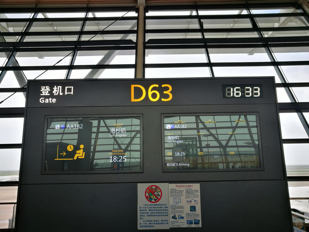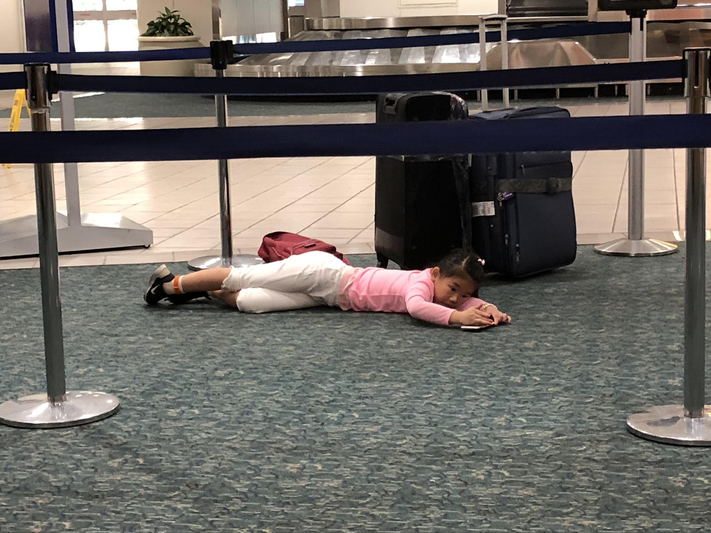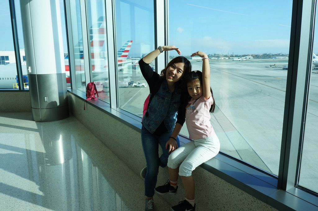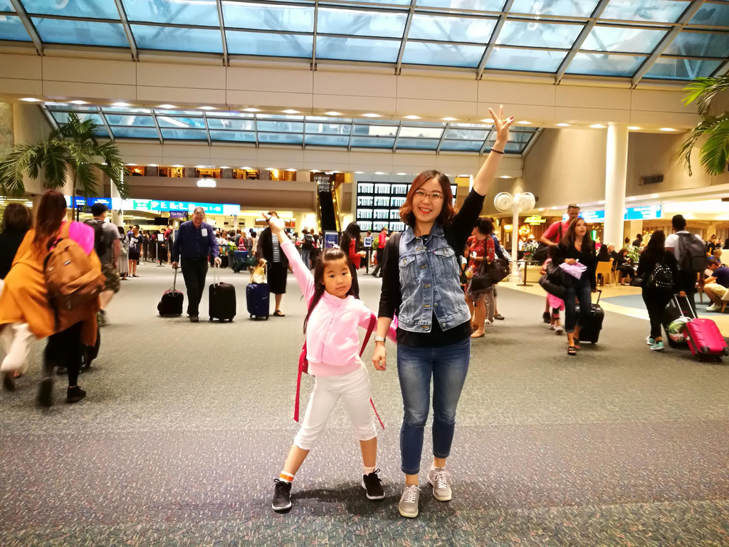 这一天我们先从上海飞到洛杉矶,用了近12个小时,飞机上的生活无非就是吃吃东西、看看电影、睡睡觉。美国航空的空姐们年纪都不小,可以说是一些老阿姨了,不像国内的空姐,都是年轻漂亮的。其实乘了很多次国际航空,都发现了这个现象,应该说,在国外看来,空姐只是一个职业而已,不管年轻年老,只要胜任,都可以做。到了洛杉矶,不管转机与否,美国海关规定都需要先入境美国,行李也要提出重新安检办理托运。办理入境时间很长,因为先要在机器上进行申报,然后再拿着单子再到海关窗口依次询问和入关。在海关窗口等待时,我深深体会到了Zoo Topia中树懒的效率,我们等的这个窗口的海关大叔动作好慢好慢,还离开柜台,带着入境游客去其他地方,在欧洲的海关是从来没有遇到过的。在而且讲话发音也不是很清晰,(好吧,原谅我听力不好) 萱宝还把自己年龄多报了一岁,我和海关大叔解释说:我们中国人习惯报虚岁,也就是比实际年龄多报一岁。(当时?啊!)我们一共用了近两个小时进行通关,好在我们的下一班飞机间隔六个小时,所以不急。