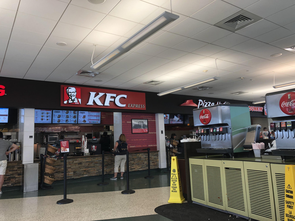 开了三个小时左后,过了迈阿密之后,我们在一个叫Coco Beach的小镇服务站停下,吃点中饭,休整一下。国外的服务站和国内的差别太大了(包括以前在意大利自驾),国内的服务站卖的都是当地小吃啥的对吧?而国外服务站里清一色快餐,而且好多都是我们国内经常看到的,如,KFC,DUNKIN DONUTS(在国内叫Mister Donuts,不过最近撤出中国了),Pizza Hut, Burger King,我们在KFC买了汉堡薯条当中饭吃。有意思的是,那边的饮料都是自助的,两个饮料机器放在饮食区域,几个快餐店共用的,顾客拿着空杯子去装即可。我在想,要是国内也这样做的话,估计有些贪便宜的都要拿着大瓶子去装回家了。