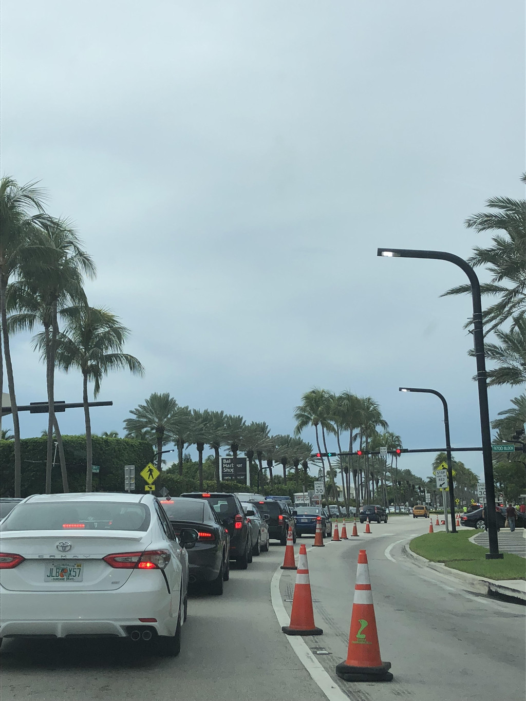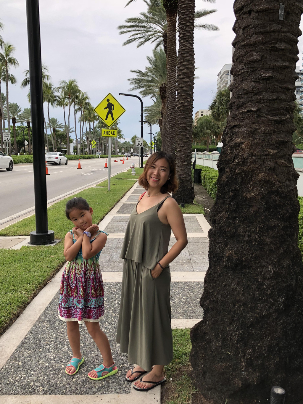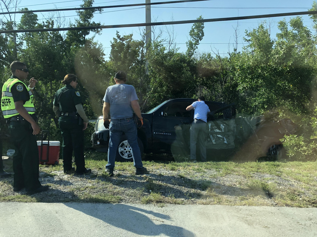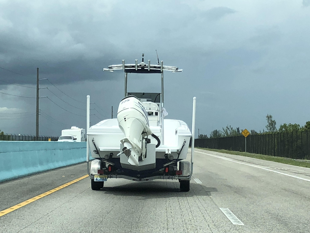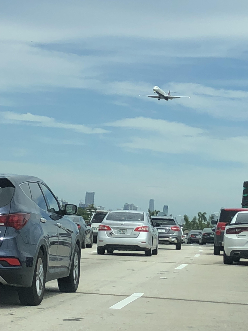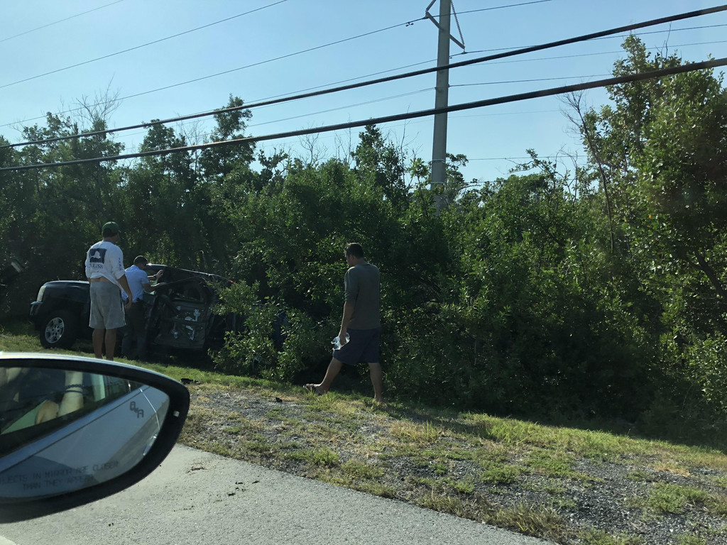 跟着导航,准备开上高速公路,没想到有一个出口出了交通事故,封路了,只能硬着头皮往前开,又碰上了有修路的,导航是离线的,没能及时更新,于是孩子爸爸各种找路,浪费了近一个小时,最后找到了正确的路线。此处,再次给孩子爸爸的镇定和智慧点赞一下!上了高速公路,就方便了,只要方向正确,就可以一直往前开了,沿着高速公路,先要路过迈阿密,迈阿密上空的天气十分多变,一会儿暴雨,一会儿天晴。有几阵暴雨下到雨刮器开到最大档位也看不清前面的路,孩子爸爸只得减速慢行。