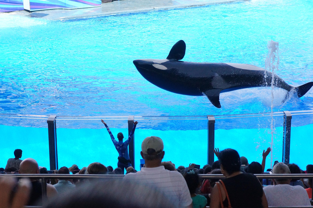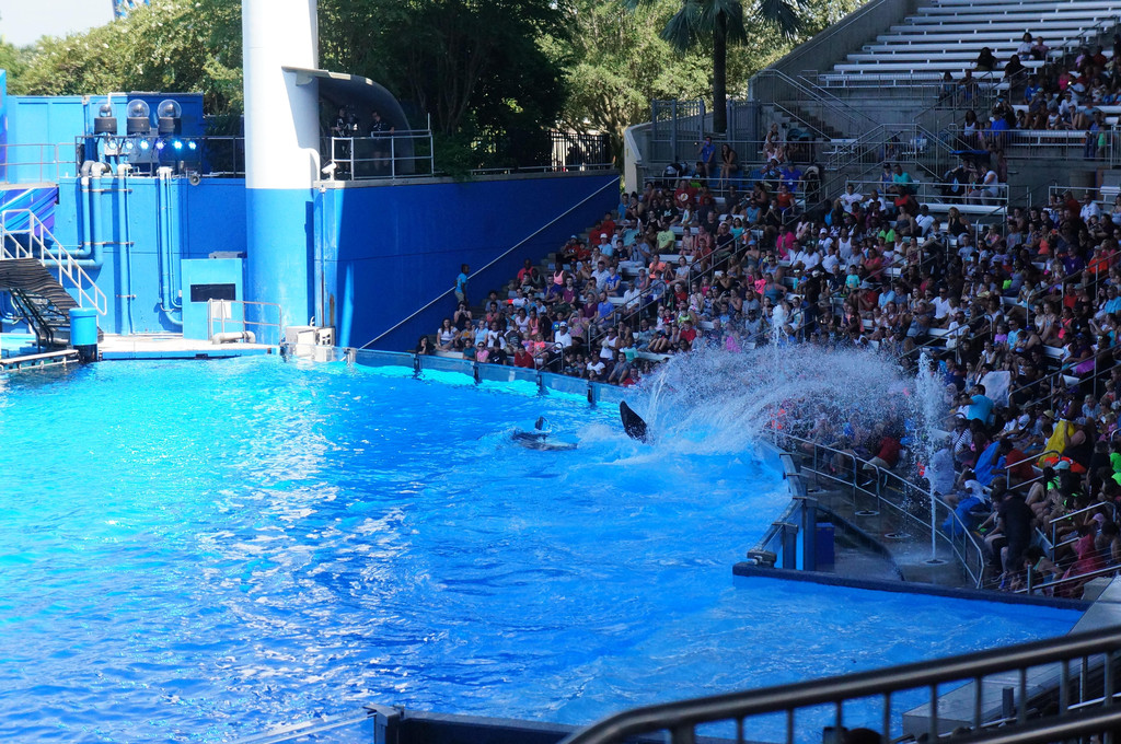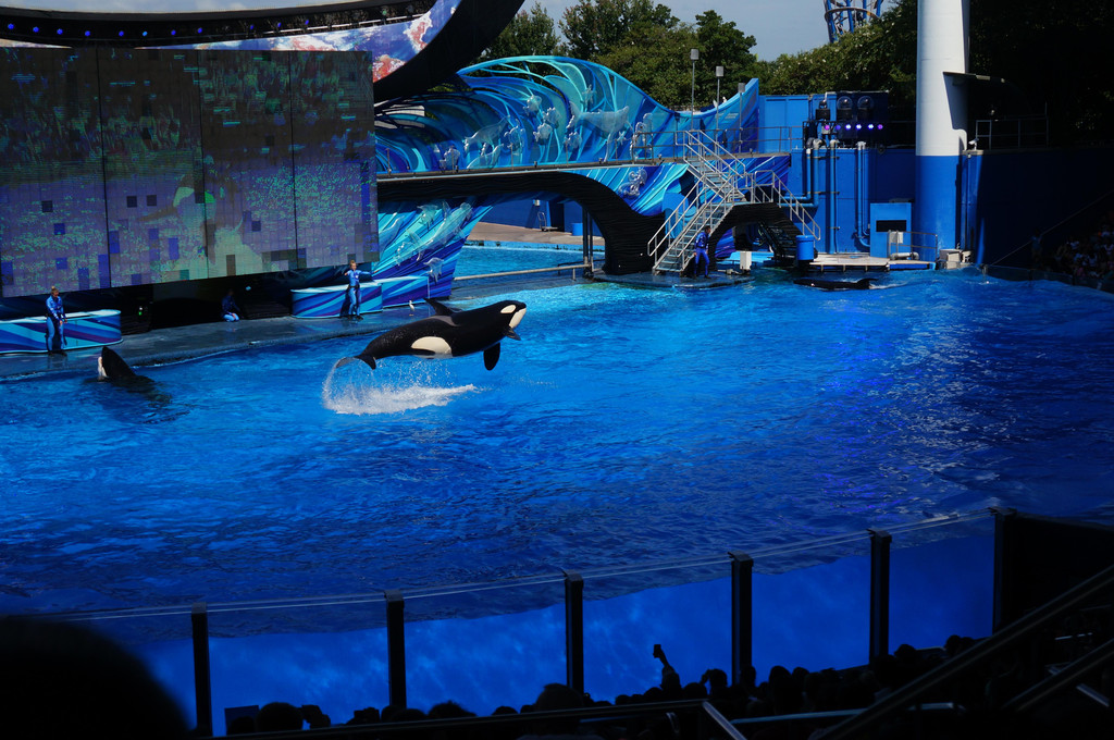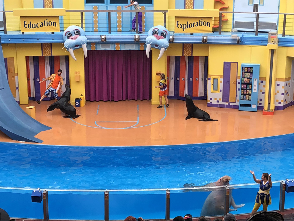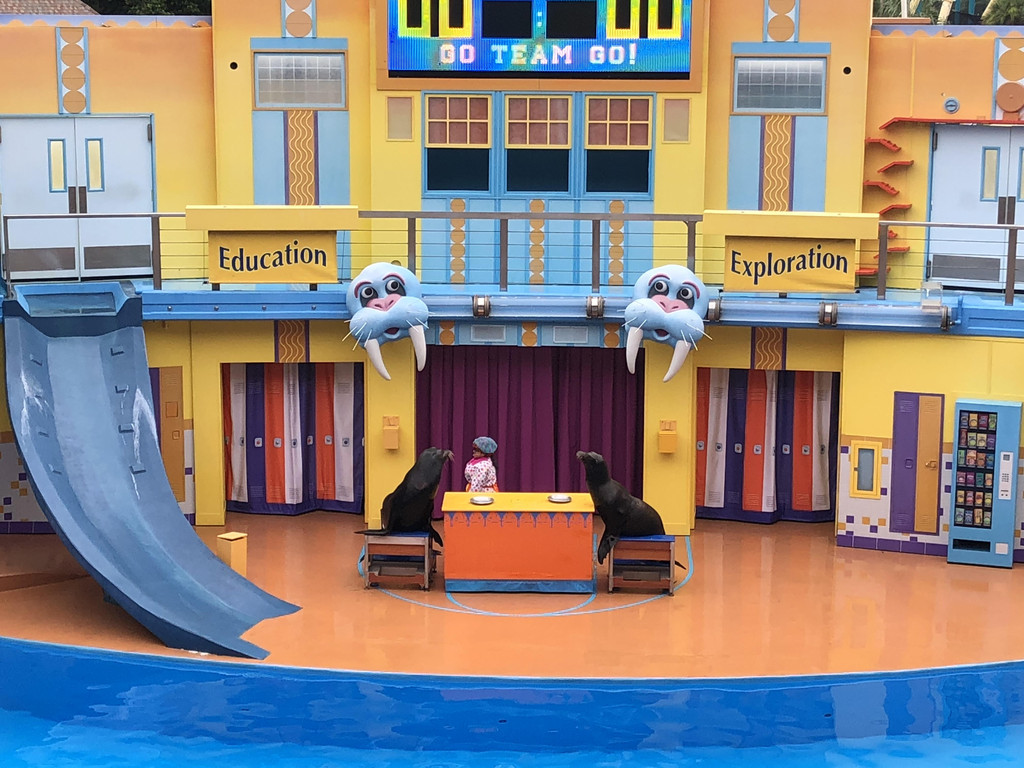 SeaWorld有三场不同的海洋动物表演,分别是海豚表演、海狮表演和杀人鲸表演,我们时间安排得比较好,都赶上表演时间了。