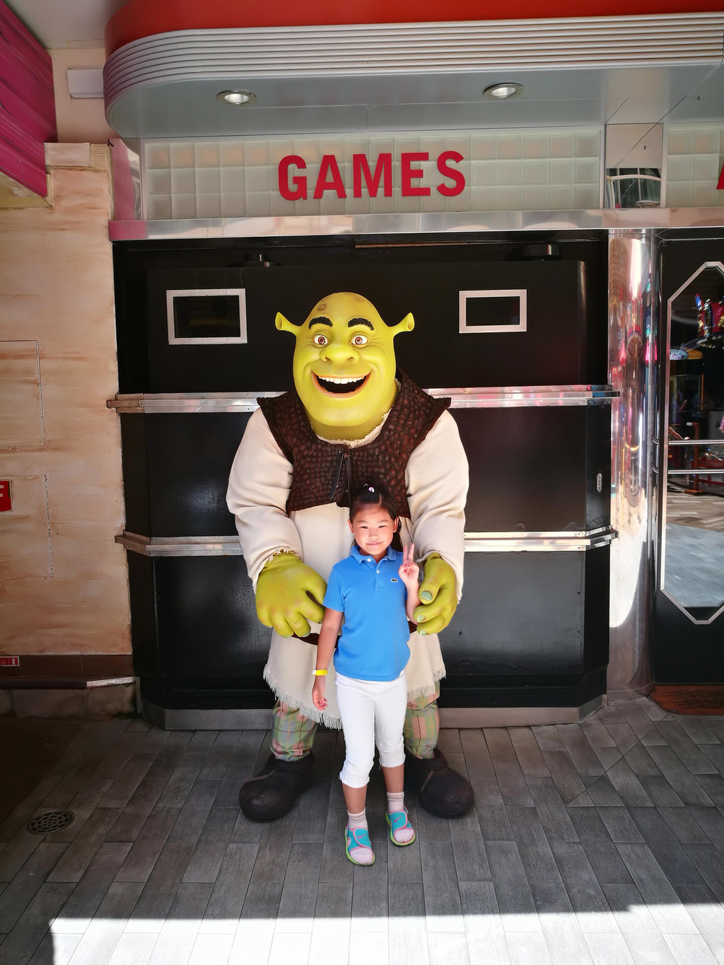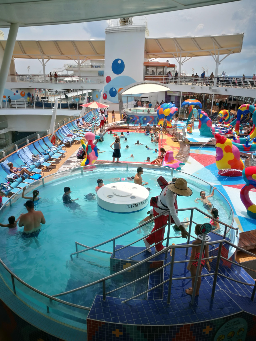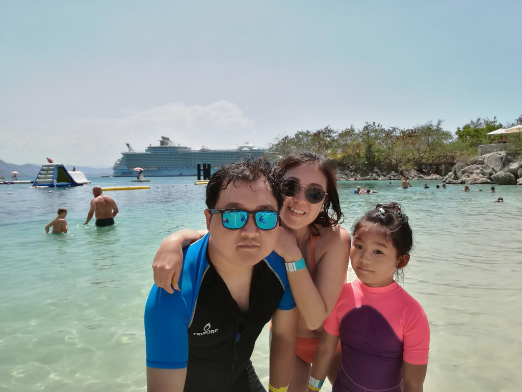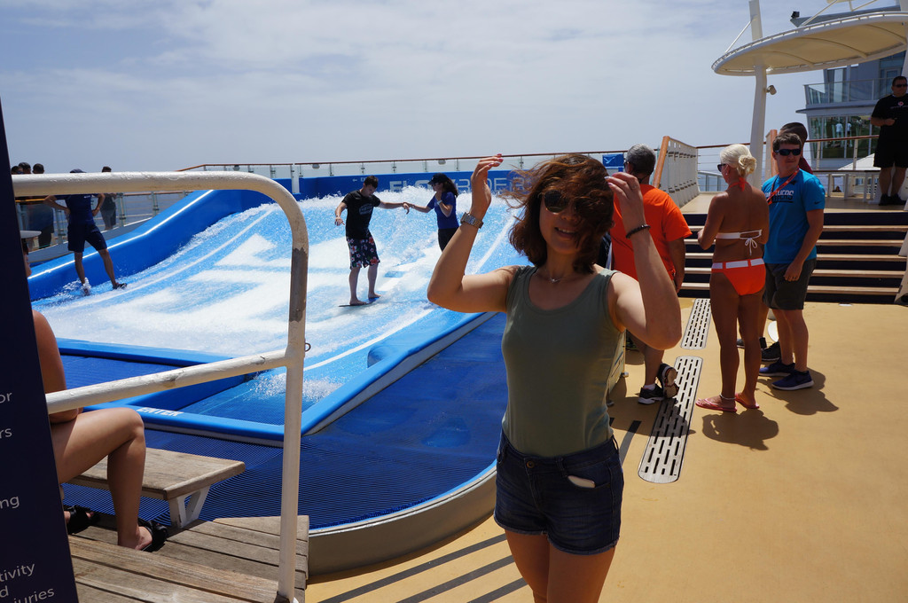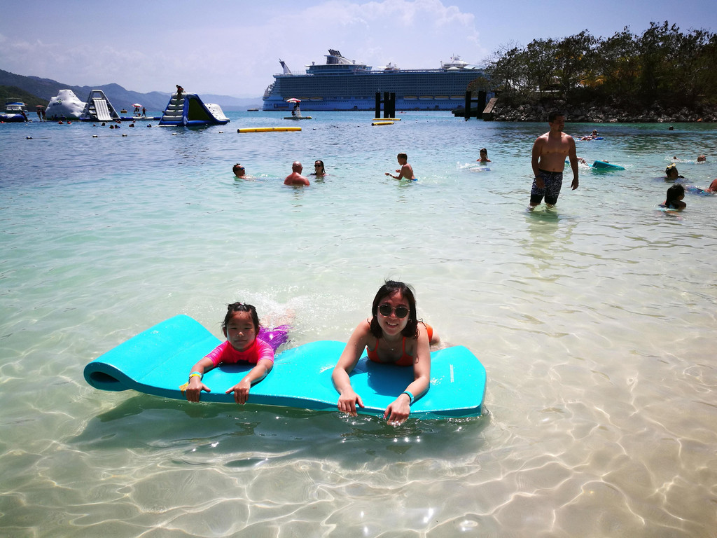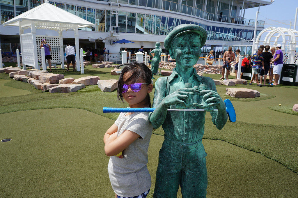 海上巡游的日子就是那么随心。预订了一场滑冰,给娃运动运动,舒展舒展。运动甲板上打打少儿高尔夫,就是阳光太强烈。看老外们冲浪,老外真的是会玩,造个冲浪池,站在甲板上冲浪。
