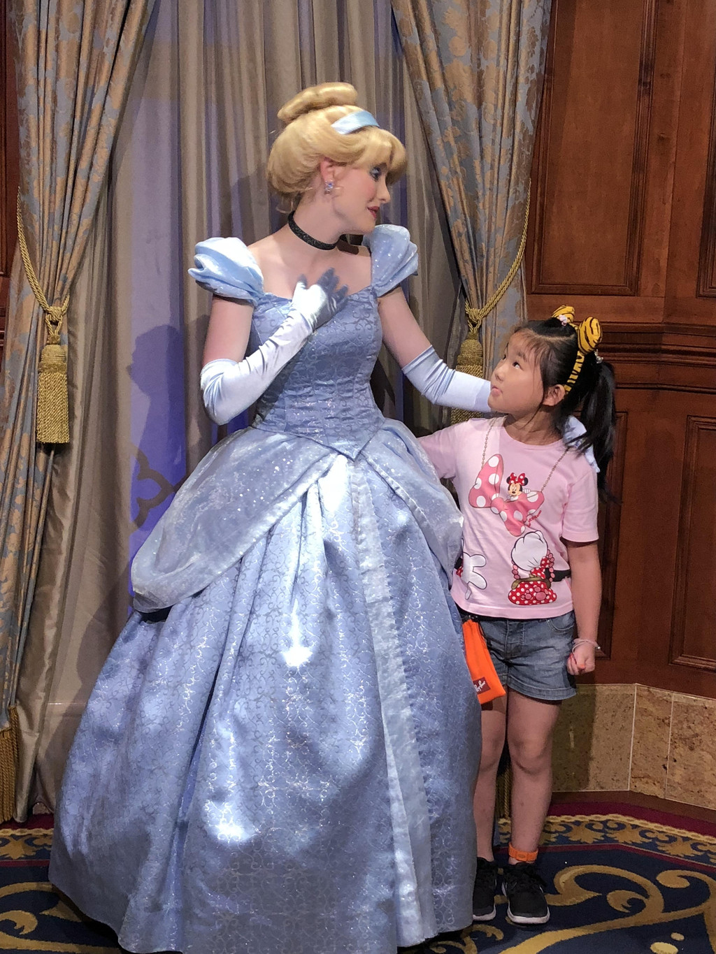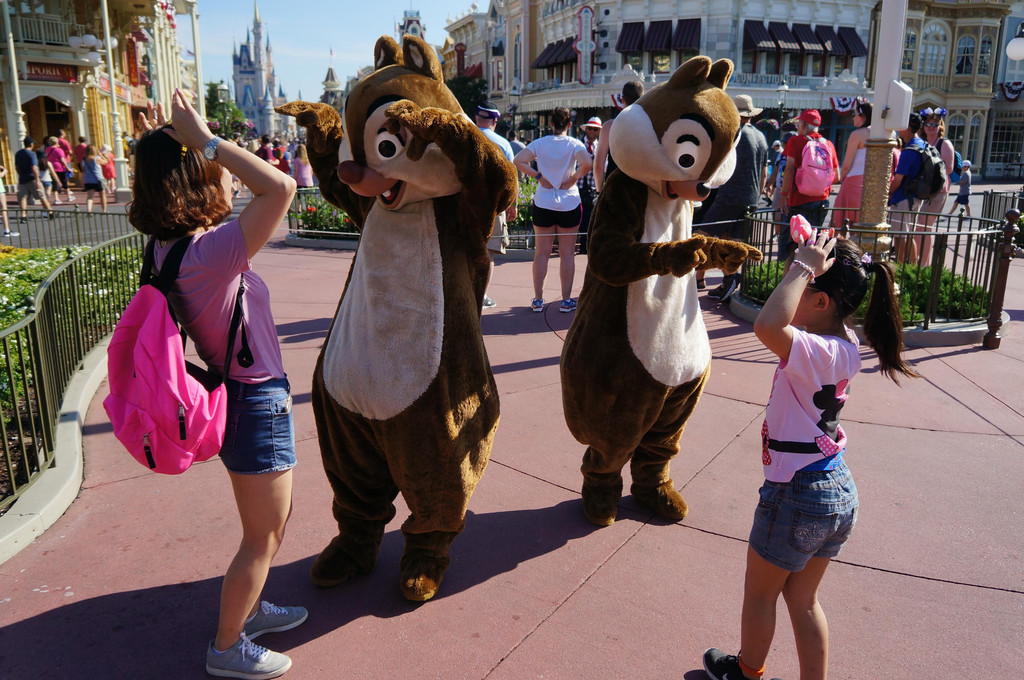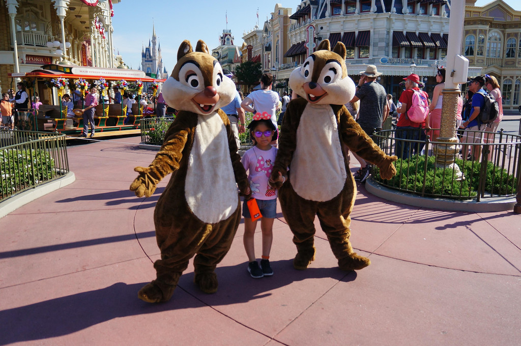 赛车玩好以后,我们坐在旁边的长廊里休息休息,毕竟昨天刚倒好时差,体力还没有完全恢复。之后我们随便逛逛,娃又玩了一个小飞象的项目,然后就回到Main Street,逛迪斯尼商店去喽。真心觉得,迪斯尼的商品还是很贵的,所以我们也只是逛逛,并没有大采购。最后给娃买了一个米奇玩偶,正好和家里去年在法国巴黎迪斯尼买的米妮玩偶配成一对,这下娃晚上睡觉前要照顾的玩偶更多了。