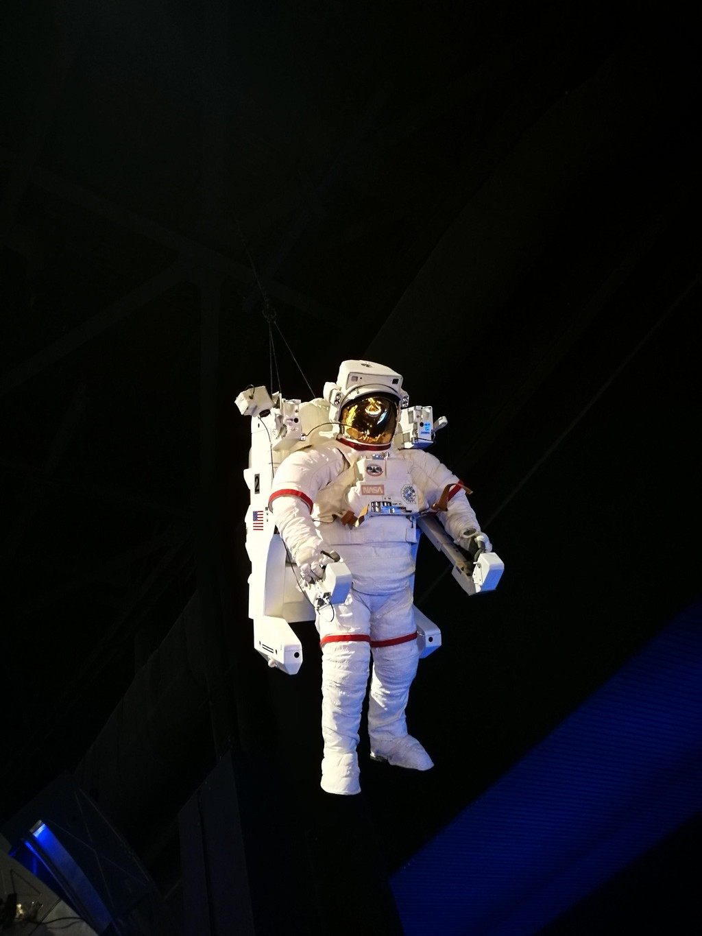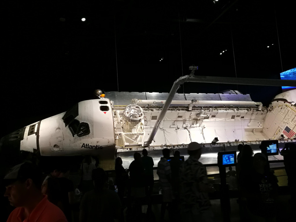 航天飞机在美国的航天历史上已经退役很多年了,然而现在看到巨大的亚特兰蒂斯就在我的面前,还是为人类的智慧而感慨。为了让游客们能够看得更清楚,亚特兰蒂斯的机身部分舱门是打开的,能看到机舱内的构造。航天飞机的上方,还特意悬挂着一位宇航员模型,看起来就好像这位天空人在浩瀚的宇宙中进行太空行走,逼真极了!