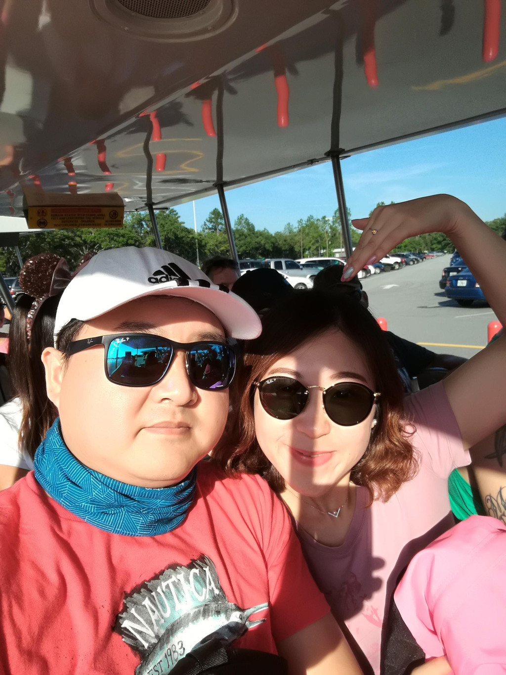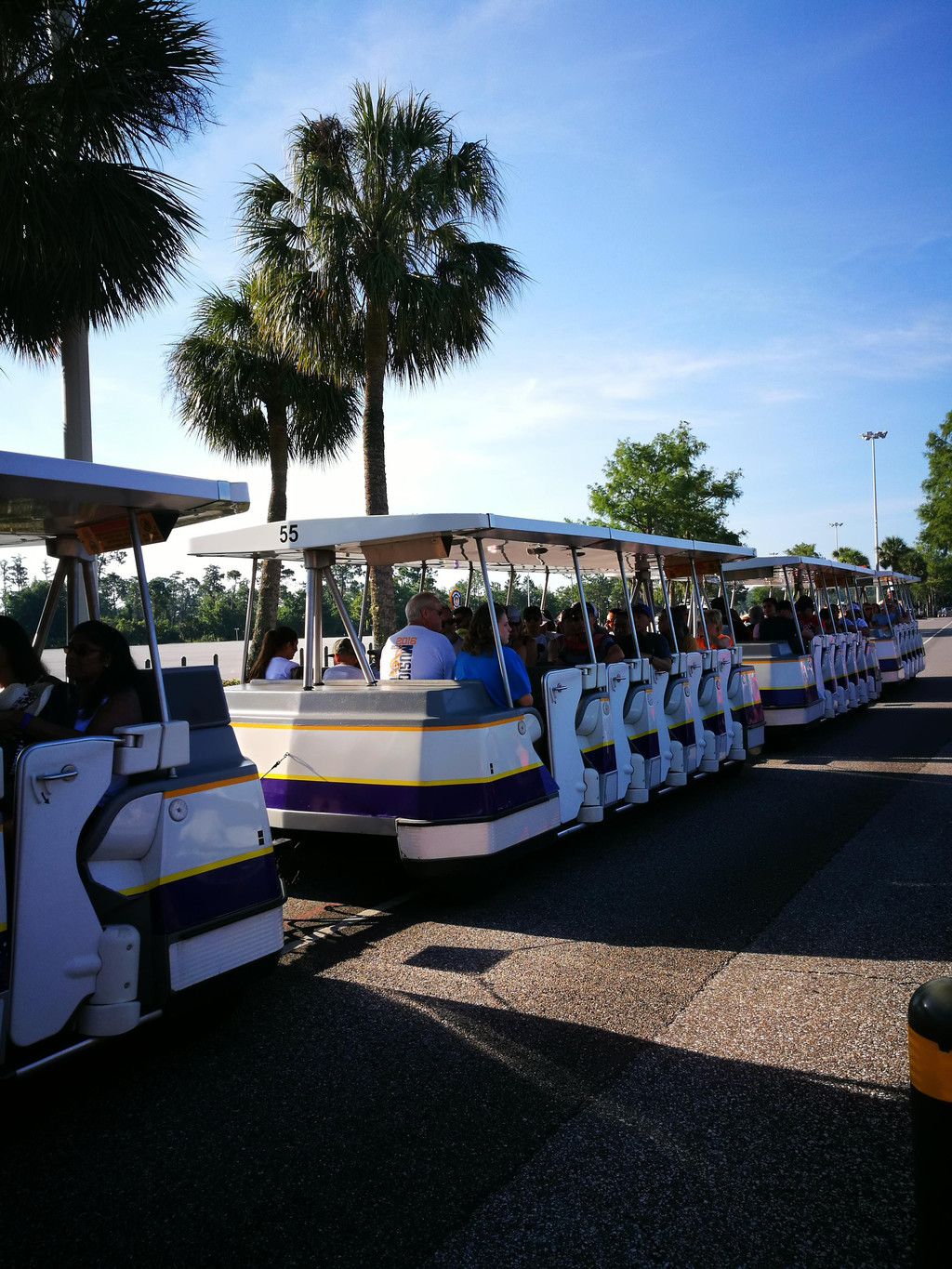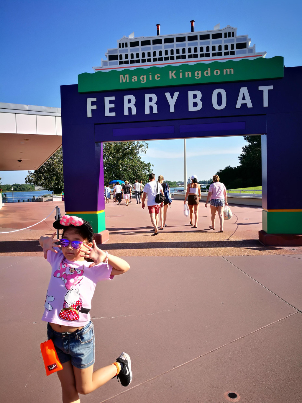 看完城堡烟花秀,人山人海的都涌向了乐园出口,我们也在人群中,往出口走去。当时就在和孩子爸爸讨论:那么多的人,迪斯尼怎么来快速疏散啊?迪斯尼有三种疏散的方式:1. Shuttle Bus到乐园的各个酒店,酒店的住客可以乘坐这种方式。2. Railway Train把游客运送到Epcot,那边有更大的集散中心。3. Ferryboat摆渡,回到来时的停车场,取车回家。我们当然选择第3种方式,Ferryboat下来,看到Shuttle Bus有两个不同方向的:trams to parking lots—Villains or Heroes。这下我和孩子爸爸晕了,我们车子早上停在哪个区域了?我们没有看啊。这可不能乱乘啊,中间可是差了很多距离的。这时我看到门口的工作人员,于是上来碰碰运气,和他说:我们没有记住自己的停车区域了。很神奇的是,工作人员拿出一张纸,上面记的是早上停车的区域划分。他问我:早上几点进的停车场?我说:九点不到。他看了一下纸上的记录,告诉我,我们是停在Heroes区域的。谢过工作人员,我们赶紧跳上了驶往Heroes区域的Tram。至于到了Heroes区域,车子具体在哪里,就只能凭我们模糊的记忆喽。看来,迪斯尼的工作真的做得非常细致,也非常有经验。他们把不同入场时间的车子按次序来停放,就是便于进行管理,也方便了我们这些没有记住停车位的冒失鬼了。
