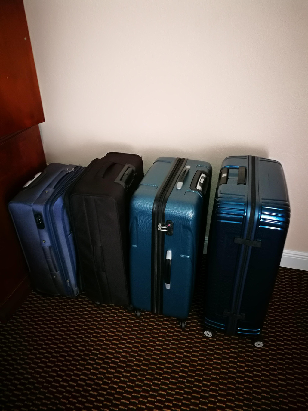 买了那么多败品,行李箱不够啦!孩子爸爸出行之前早已“预谋”好,少带一个箱子,到了美国直接买。于是,我们又冲进新秀丽,买了一个硬壳的大箱子,还帮他同事带了一套子母箱。