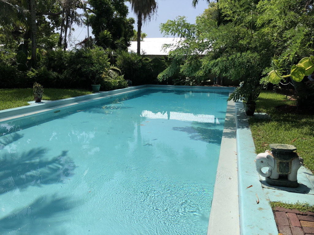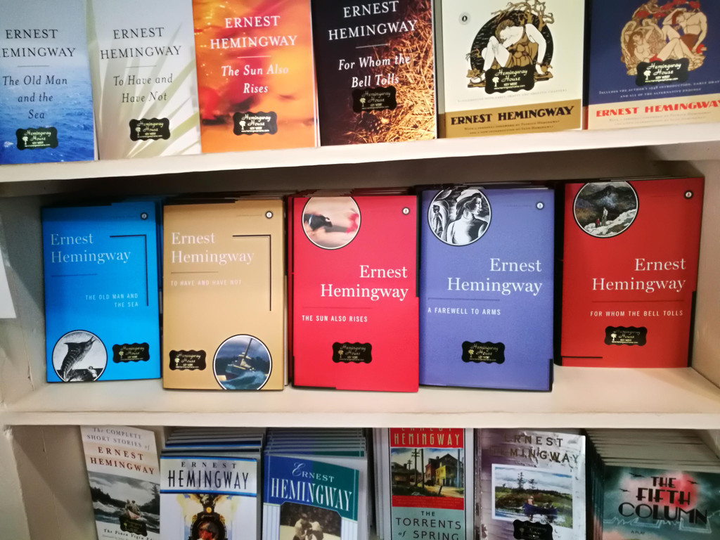 当然不是啦,我们还参观了海明威故居的游泳池,这座游泳池目前仍然是基韦斯特岛上私人民居最大的游泳池。我们还到纪念品商店逛了一圈,感受一下老海的文学气息。孩子爸爸第一次知道了《永别吧,武器》的英语名字叫什么。大概逛了一个多小时之后,我们离开了海明威故居,向酒店Shuttle Bus点走去,下午回酒店去游泳喽!