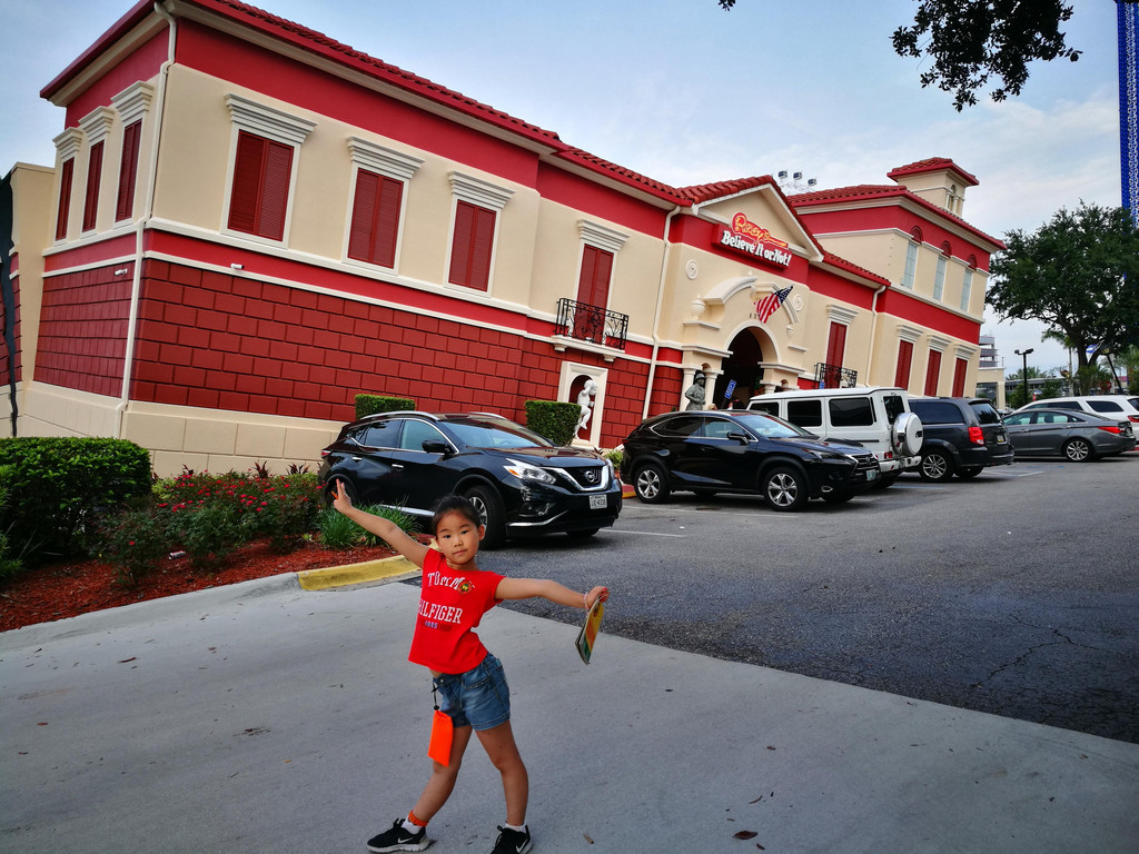 再往前走一点,有一家博物馆,名叫Believe it or not,我把它翻译成“信不信由你”。远远看去,房子就是不平的,我刚走到房子前面,就已经感觉晕了,真的头晕。孩子爸爸和娃还跑到房子里面去,一看是要收费参观的,就跑出来了。我问他们:“你们不觉得晕吗?”他们说:“还好啊。”好吧,那就是我年纪大了,看看就觉得晕了。我猜想,估计里面的展品也都是奇奇怪怪的吧。而吸引我注意的是,停车场上停了好多车,而且车牌是来自不同的州的。每个州的车牌都各不相同,而且各有特色。后来听移居美国的老同事Cathy说,在美国每个州,都有很多种不同的车牌,可以申请自己喜欢的式样。哈哈,美国真是一个尊重个性的国家啊!我不禁叫孩子爸爸把这些不同的车牌都拍了下来,人家还以为我们是搞什么间谍工作的呢。