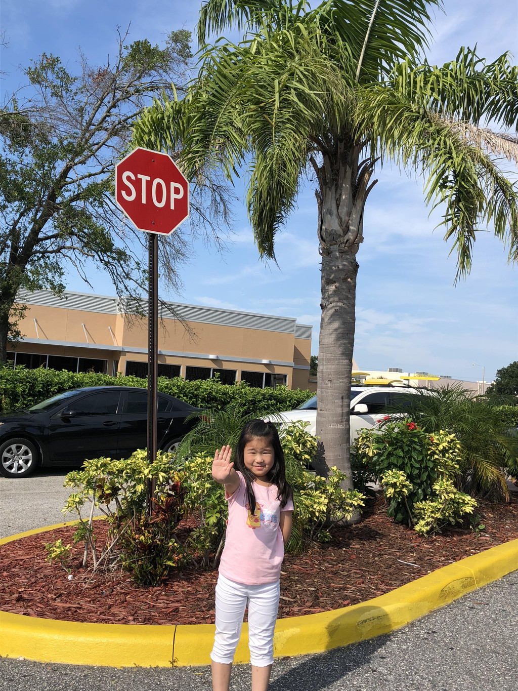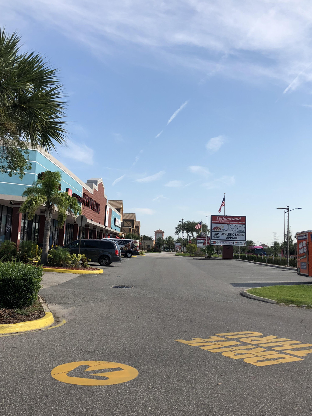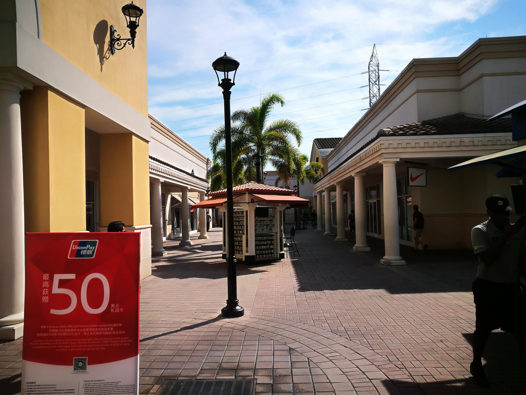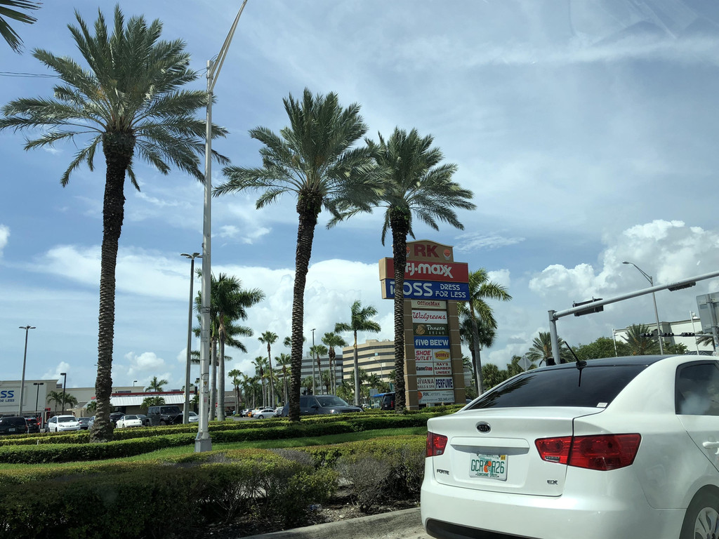 踏上美国土地的第一次自驾,非孩子爸爸莫属(我属于替补队员)。跟着TomTom导航,用时二十几分钟,我们来到了Orlando Premium Outlets。时间还早,商店还没开门呢,看到旁边有一家“金拱门”,毕竟麦当劳中国也有,比较熟悉里面的食物点起来方便点,赶紧进去点个早饭,长途飞行之后已经饥肠辘辘了。吃好汉堡包,附近小小逛了一圈,感受一下佛罗里达的阳光和空气。开阔的道路,高大的椰子树,还在树下看见一只小壁虎,阳光直射在身上,一派南国风情。
