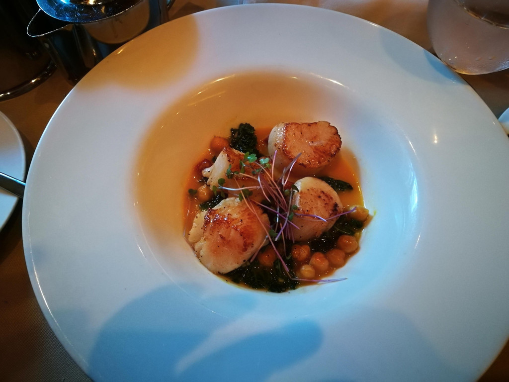 带子。去年在法国时,就心心念念想吃带子,但一路上都没有吃到。这次在船上倒是吃到了,看起来量不大,其实这些带子肉质非常紧实,又嫩,非常美味哦!