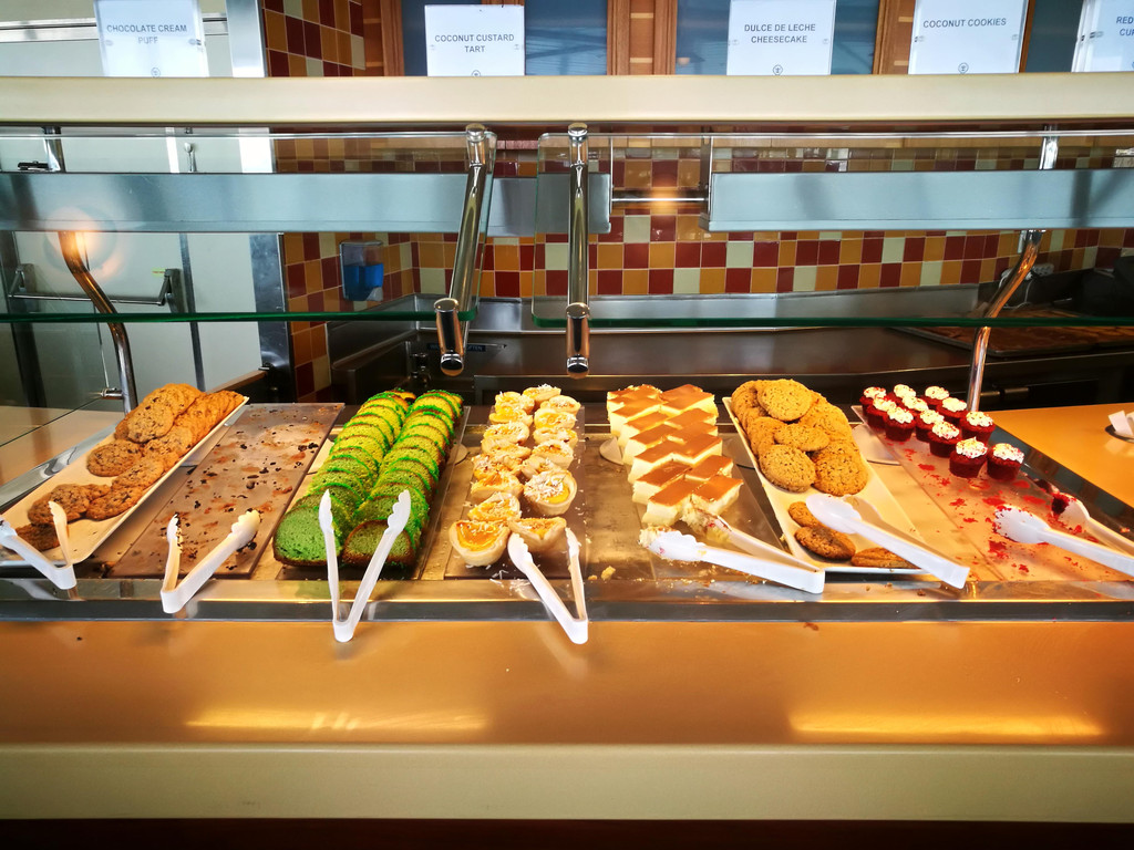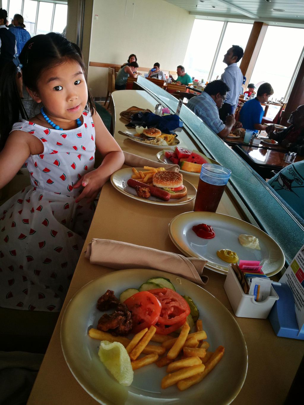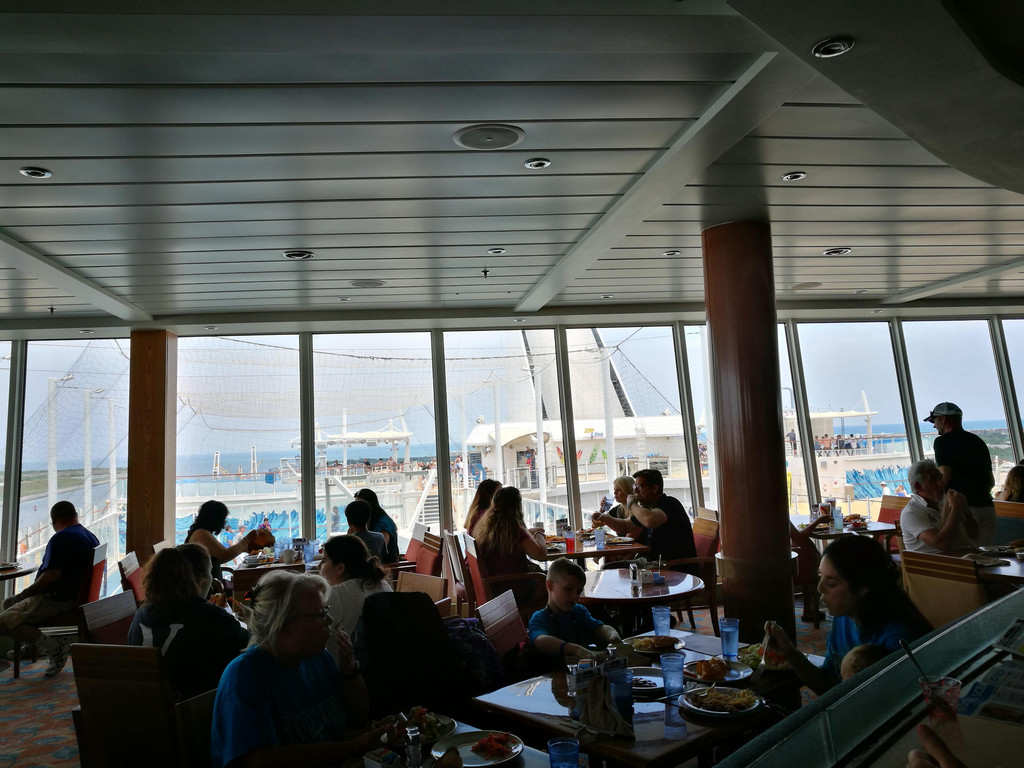 今天是海上巡航日,我们睡到自然醒,然后去自助餐厅吃早餐。到了餐厅门口一看,好家伙,门口开始排队用餐了,原来大家今天都起得晚了呀。