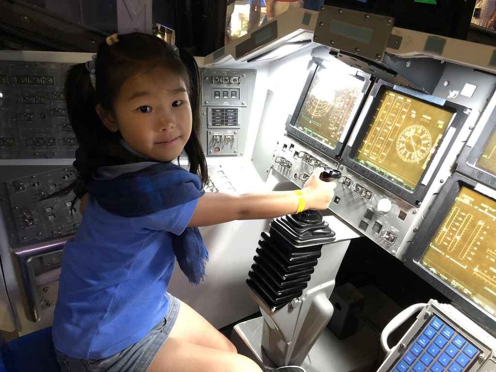 而对小朋友来说,最有趣的莫过于亲自坐进亚特兰斯蒂的驾驶舱,亲手摸一摸各种开关和按钮,孩子们探索宇宙的兴趣也许就从此刻萌芽了。