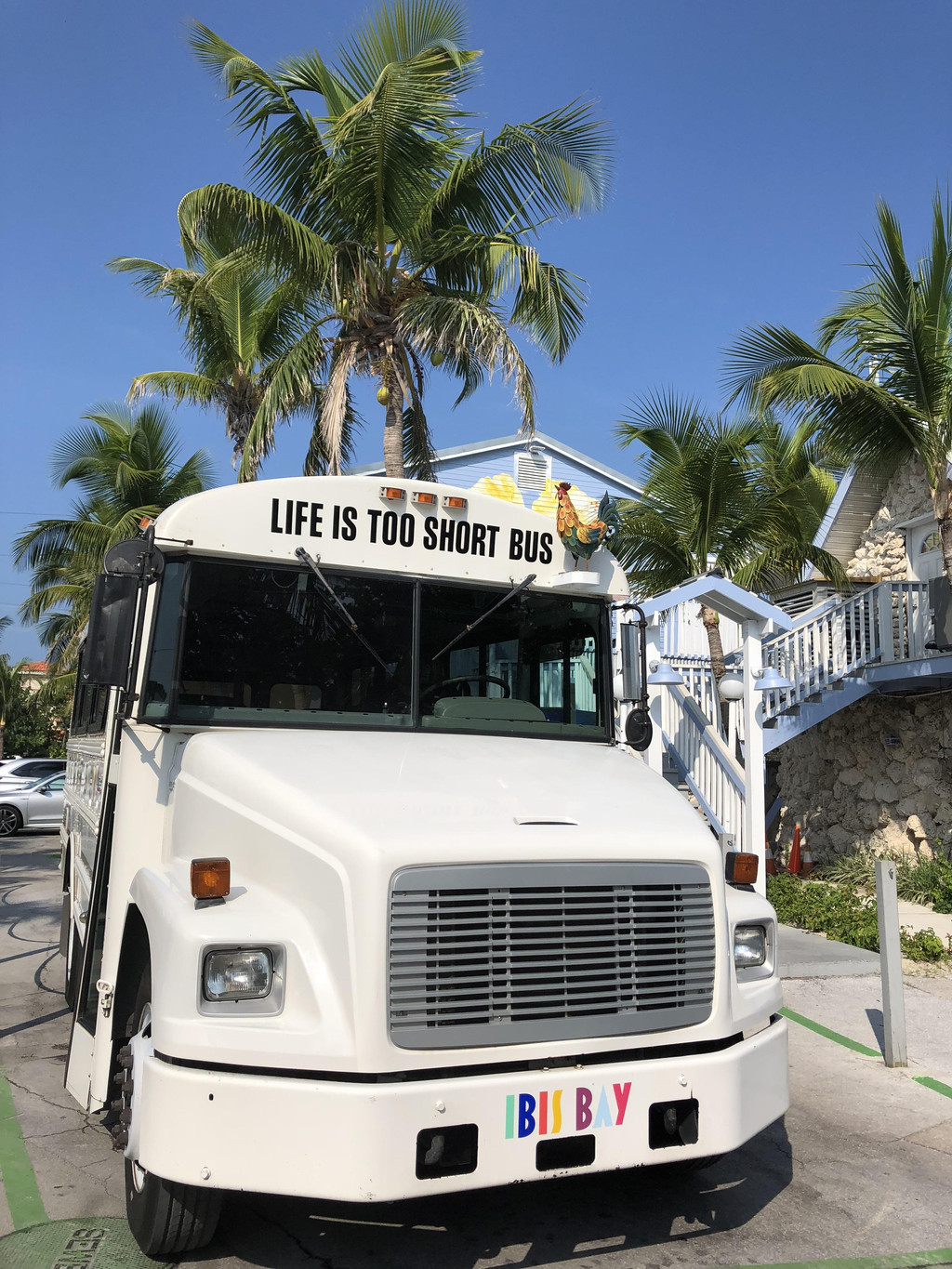 上午十点,吃过早饭,我们乘坐酒店的Shuttle Bus到基维斯特最南端一览。Shuttle Bus装饰十分独特,一只大公鸡站立在车头,并写着:life is too short bus,非常符合每一个周游世界的旅客的心情啊,人生太短,我要出去看看,哈哈!