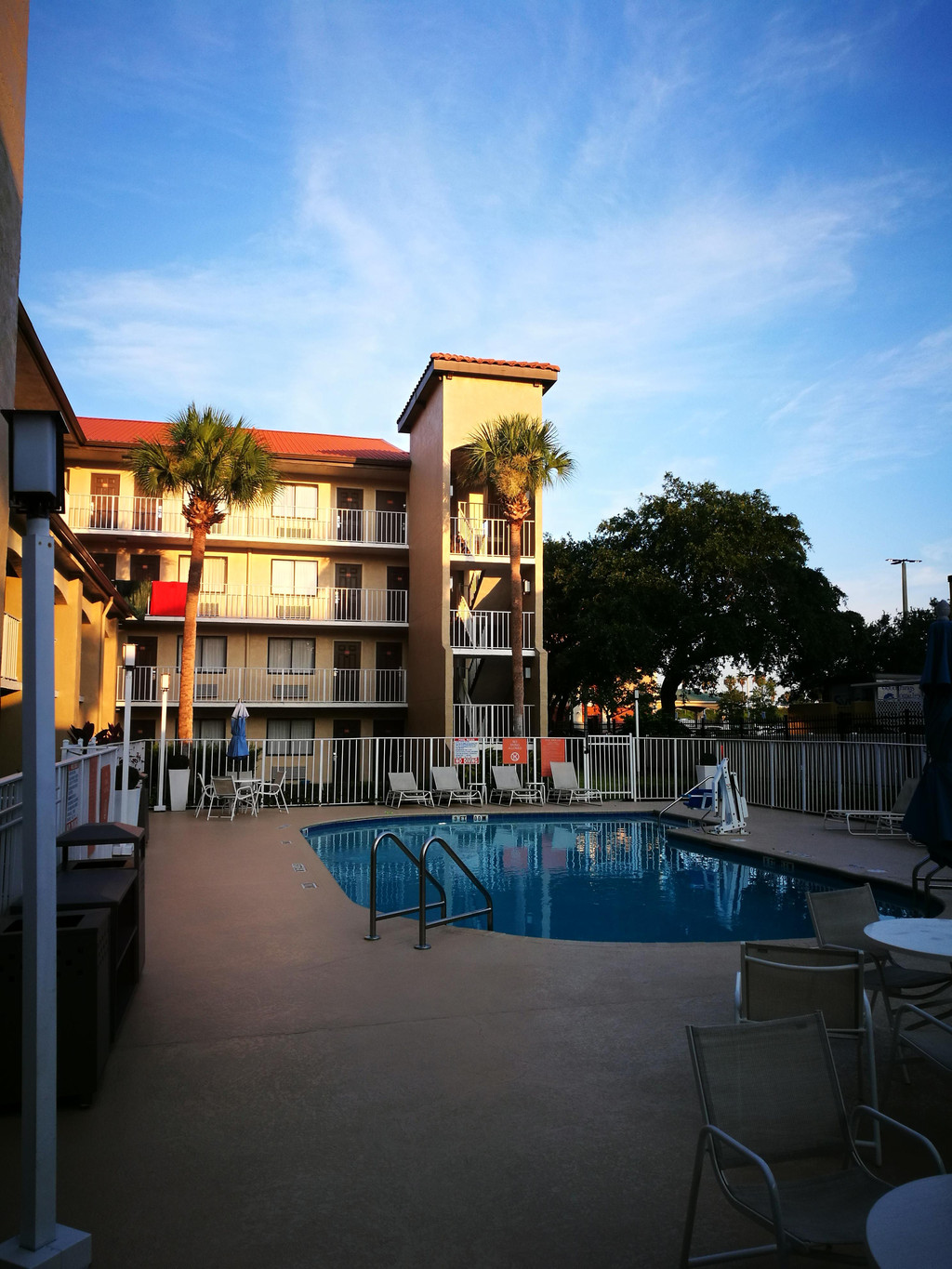 在这三天返回奥兰多继续游玩的日子中,我们住的是汽车旅馆,Days Inn Orlando Airport - Florida Mall住3晚,折合下来一千四人民币,美国这一类汽车旅馆很多,价格比较实惠,而且有意思的是,在美国不论旅店大小,游泳池都是标配。离机场很近,转机的人多,酒店里很多南美人,所以酒店里有三种语言,除了英语外还有西班牙语(古巴、阿根廷)和葡萄牙语(巴西),这家旅馆早饭很简单,也很自主。说简单,当然不能和星级酒店的自助早餐相比,每天的早饭都一样,无非是一些切片面包啊,燕麦粥啊,华夫饼啊,水果啊,饮料么,也就是咖啡啊,红茶啊,酸奶啊之类的,没有肉食,比上一家差不少。说自助,是因为有些早饭需要你自己动手做的,比如面包自己放进小烤炉烤成土司,还有华夫饼也是大家一个一个排队,自己在小炉子上做的。