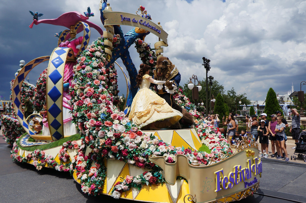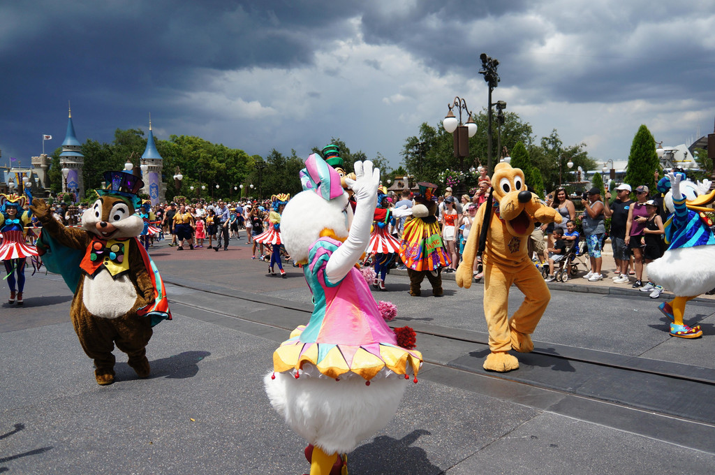 到了下午两点多,我们基本上把FP和热门的项目都玩完了。看看要到花车巡游的时间了(下午三点),我们赶紧乘小火车回到Main Street,选了城堡前面的位子,等待花车巡游。一直被迪斯尼花车巡游的演员们的卖力表演而感动,这次也不外如此,他们的笑容、舞姿带动了所有的游客,彷佛这些卡通人物就真实地出现在你的眼前,把你带回到童年的时光。