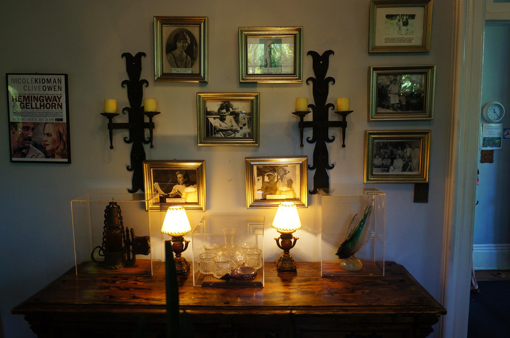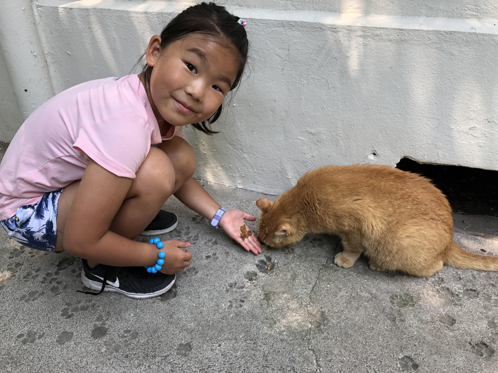不知不觉,我们又走回到海明威故居了,又开始纠结是否要进去参观一下。听说海明威生前养了好多六趾猫,挺稀奇的,算了,就冲着一睹六趾猫的风采,孩子爸爸掏出美刀,买了门票。既然进了故居,还是要怀着缅怀文学大师的心情谦虚地参观。海明威的最后十年就是在这里度过的,在这座靠海的独栋别墅中,他写出了名著《老人与海》。顺着路线,我们依次参观了老海的客厅、书房、卫生间(连卫生间也要参观。。。)、卧室,屋里有许多的老物件,墙上挂着很多老照片。给我印象最深的是,老海生前一共有过四任妻子,文学家的气质,果然风流啊~~!至于那些六趾猫,原来是他的一位友人从非洲给他带来的礼物,这只六趾猫在老海家常住下来,并且繁衍后代,所以现在有好多只六趾猫啦,但不是全部,基因遗传的奥妙所在嘛。在花园中,我们发现了一处猫的墓园,墓碑上记录了所有在老海家去世的猫咪姓名和生卒年份,看来这真是爱猫的一家人啊。在屋后,我们看见了几只给猫住的笼子,里面关着一些小猫咪,我们仔细寻找拥有六只脚趾的猫咪,果然被我们找到几只。小萱真是开心极了,一直在和六趾猫咪玩,给它们喂猫粮。看着这些猫咪或走或躺,慵懒的样子,竟然有点羡慕它们呢。能做一只在海明威故居生活的猫咪,太幸福啦!写到这里,真的感觉我们一家就是冲着这些猫咪进去参观的呢。