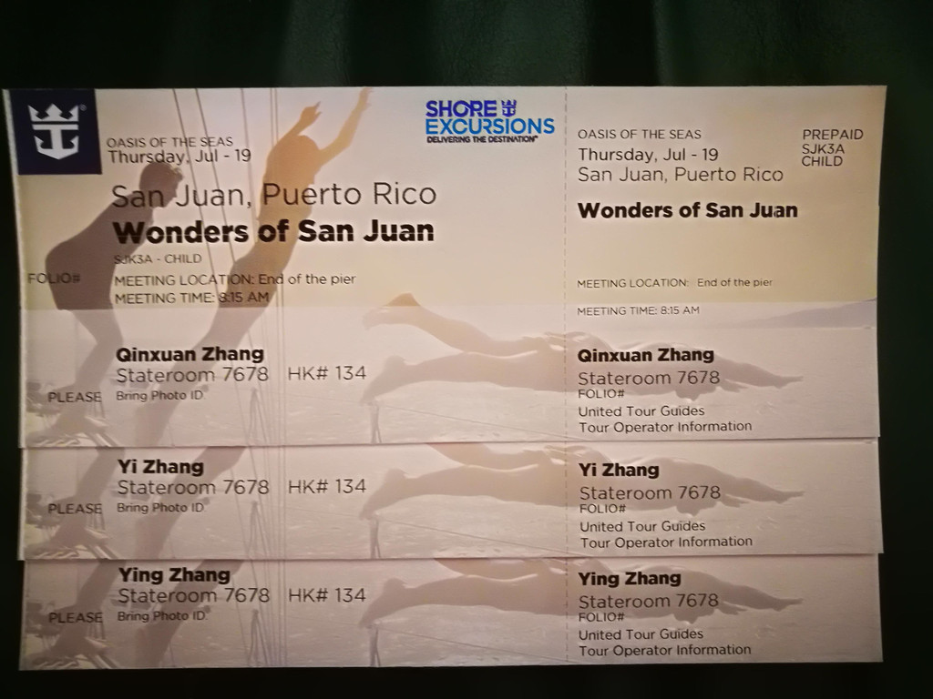 关于美签,我一直担心自己签不出来。因为和孩子爸爸相比,他几年以前出差去过一次美国,有过出入境美国的记录,会比较好签。而我,虽然护照上有欧洲申根签证,但是美国签证还是头一次,听说美国签证的拒签率还是比较高的,所以一直紧张到去签证的当天。关于美国签证的申请和步骤,因为都是孩子爸爸弄的,我说不清楚,所以此处就不多介绍。去签证当天的情景,我至今还历历在目。我们事先准备的所有材料,签证官都没有要看,就是通过问我们问题来进行判断。一开始签证官用中文问我们的姓名啊、职业啊,当问到我的职业是英语老师之后,签证官马上改用英语和我们交流。更有意思的是,当问到我们去美国哪里玩时,我们说定了加勒比邮轮,去圣胡安、圣马丁等小岛玩时,他马上说自己就是来自于圣胡安的,开始滔滔不绝地和我们介绍圣胡安有哪些好玩的,面试结束时,还不忘祝我们在美国玩得愉快!没想到,碰到了对的签证官,美国签证是绝对没问题的啦。不过,当天排在我们前面的几个年轻人,都被拒了。我依稀听见有一个男的是搞IT的,要去美国公司出差。还有个男的是家里有亲戚在美国,要去拜访一下,各种原因的都有,但是都被拒了。总结一下经验,貌似像我们这种有正当职业的,家庭型的去美国旅游的,出签率比较高。所以办理美国签证的时候,一定要真实,而不是准备大量的资料。
