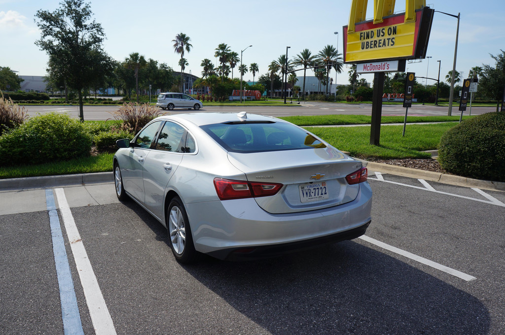 租车公司的停车场在机场大楼的对面,顺着指示牌很容易就找到了。可以根据给你的取车单上车位号去找,钥匙是已经放在车里了,当你的车子开出停车场的时候,会有人来检查你拿的车是否正确。然而找了两圈都没有找到Budget的地块。后来我灵机一动,发现Budget和Avis是一家公司,他们共用了一块停车场地。找车子的时候不需要把Budget和Avis区分开来,只要找号码即可,于是我们顺利找到了陪我们度过接下来四天的迈锐宝Malibu,迈锐宝在国内应该算是比较好的车型,但是我们这款车型好像国内没有卖的,但是在美国,开的人挺多的,到底是美国本土的牌子啊。