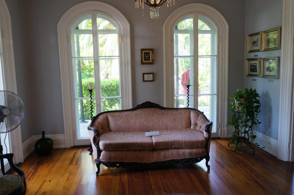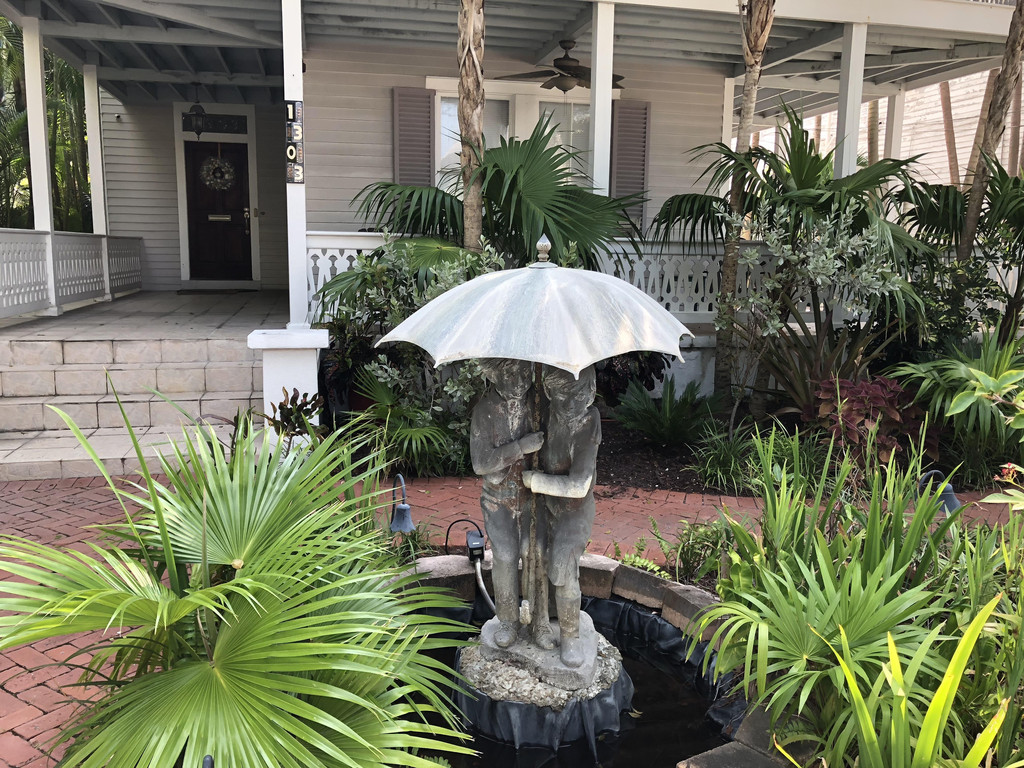 我们在Whitehead Street下车,往前走,一路上欣赏两边的私人住宅,颜色鲜艳的小洋房掩荫在椰子树中,住宅前的花园内还摆放着各式石雕,有些还有小型喷水池,多羡慕这样慵懒的生活啊!再往前走,我们看到了Hemingway海明威故居,一看门票,大人要14美刀,小孩是6美刀,嫌贵,想想自己对文学也没啥研究,直接pass~~。