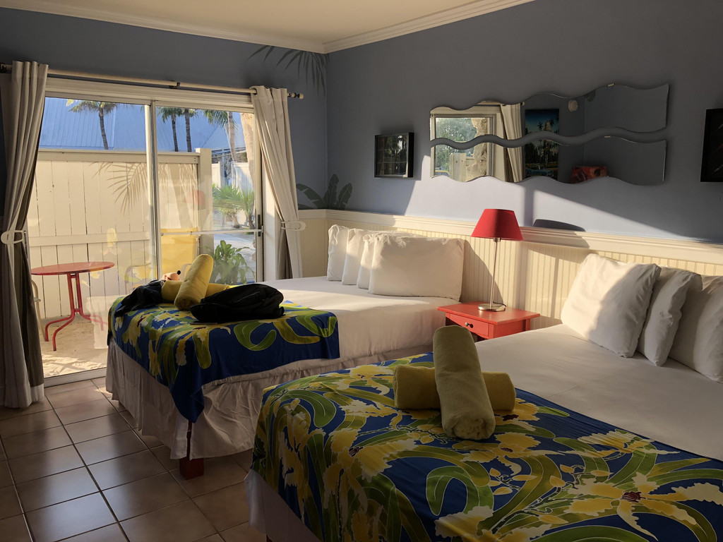 美国的酒店相较于欧洲酒店,面积都比较大,床也比较大,都是2张双人床(毕竟美帝地大人少嘛!),停车也十分方便,可以直接停到房间门口,而且基本上酒店都带泳池,所以我们此行选择的也大多是经济型的连锁酒店,只有迈阿密相对高级一些。更何况,还有八天的邮轮生活,那可是“海上养猪场“的日子呢。孩子爸爸每次旅行都是在booking上定的酒店,根据酒店的地理位置、停车情况、房间大小、价格等综合考虑。
